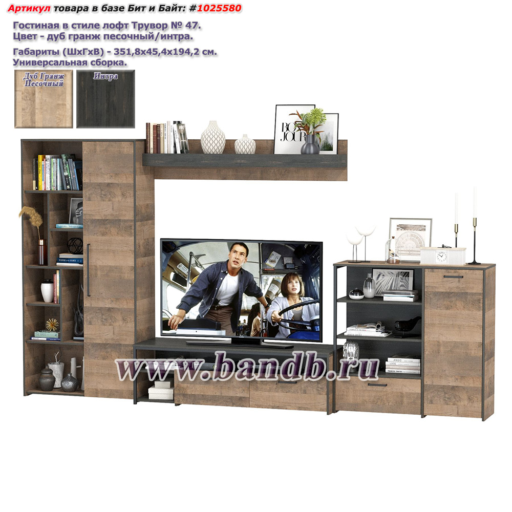 Прихожая открытая с высокой обувницей с зеркалом Трувор цвет дуб гранж песочный/интра