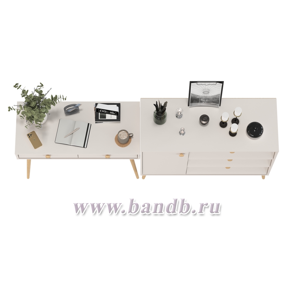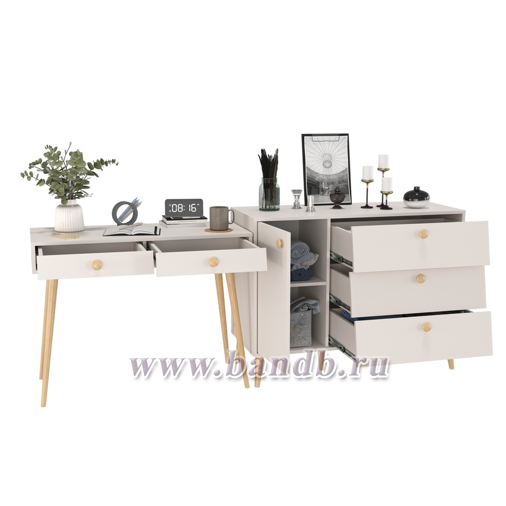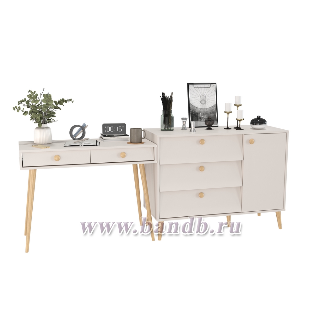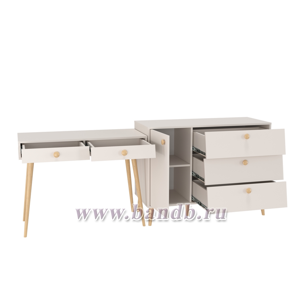 Афина спальня стол с ящиками и комод с дверкой и тремя ящиками цвет кашемир серый