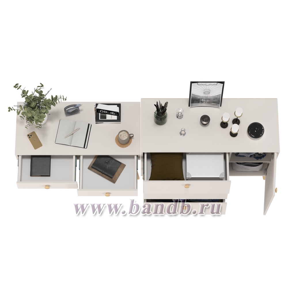Наименование товара: спальня стол с ящиками и комод с дверкой и тремя ящиками.