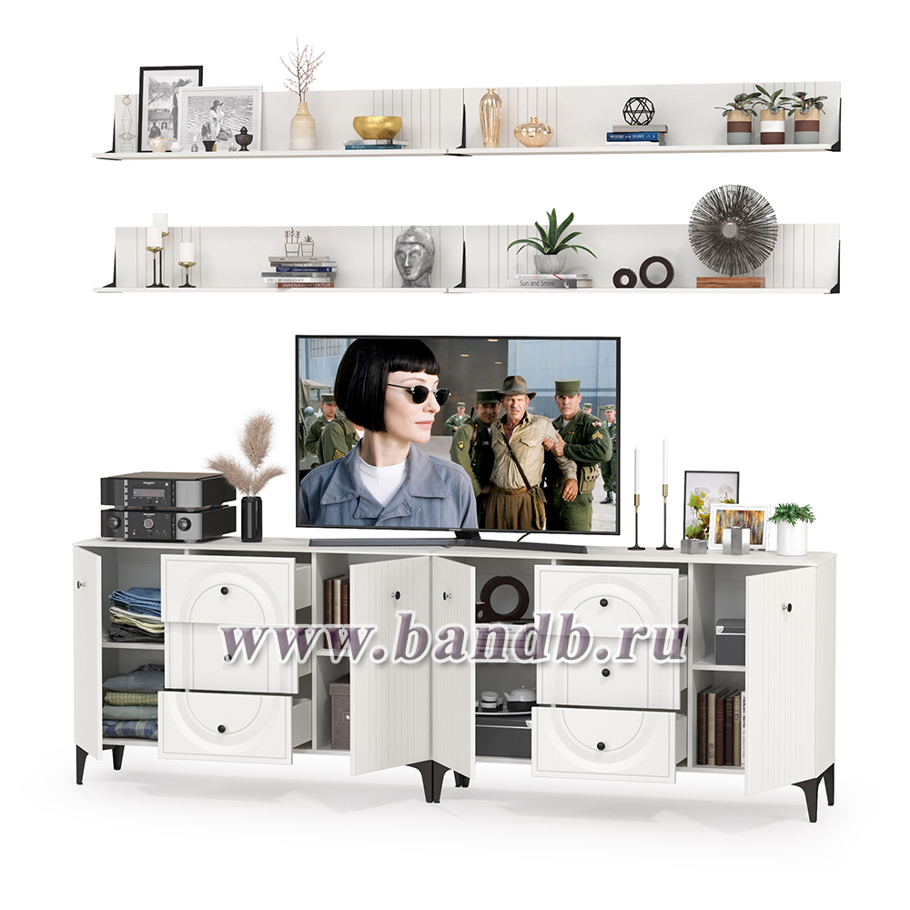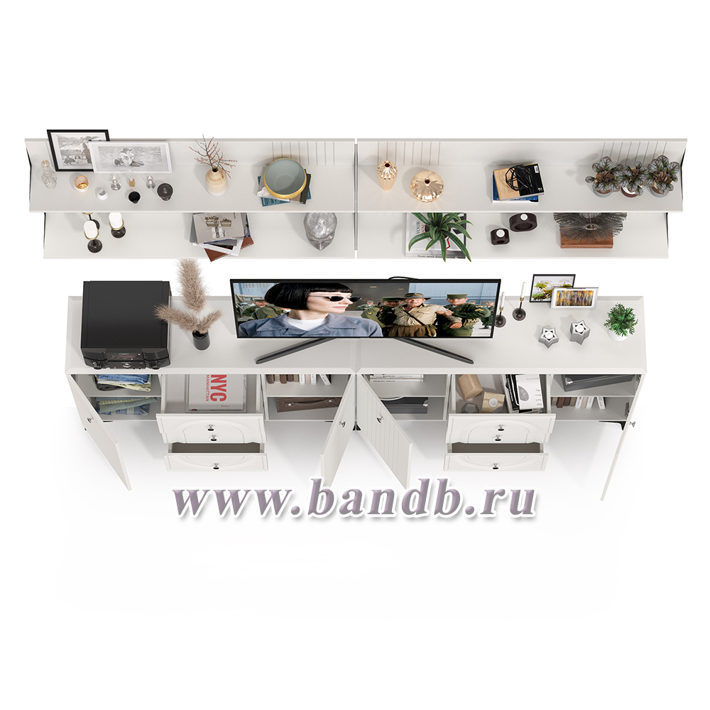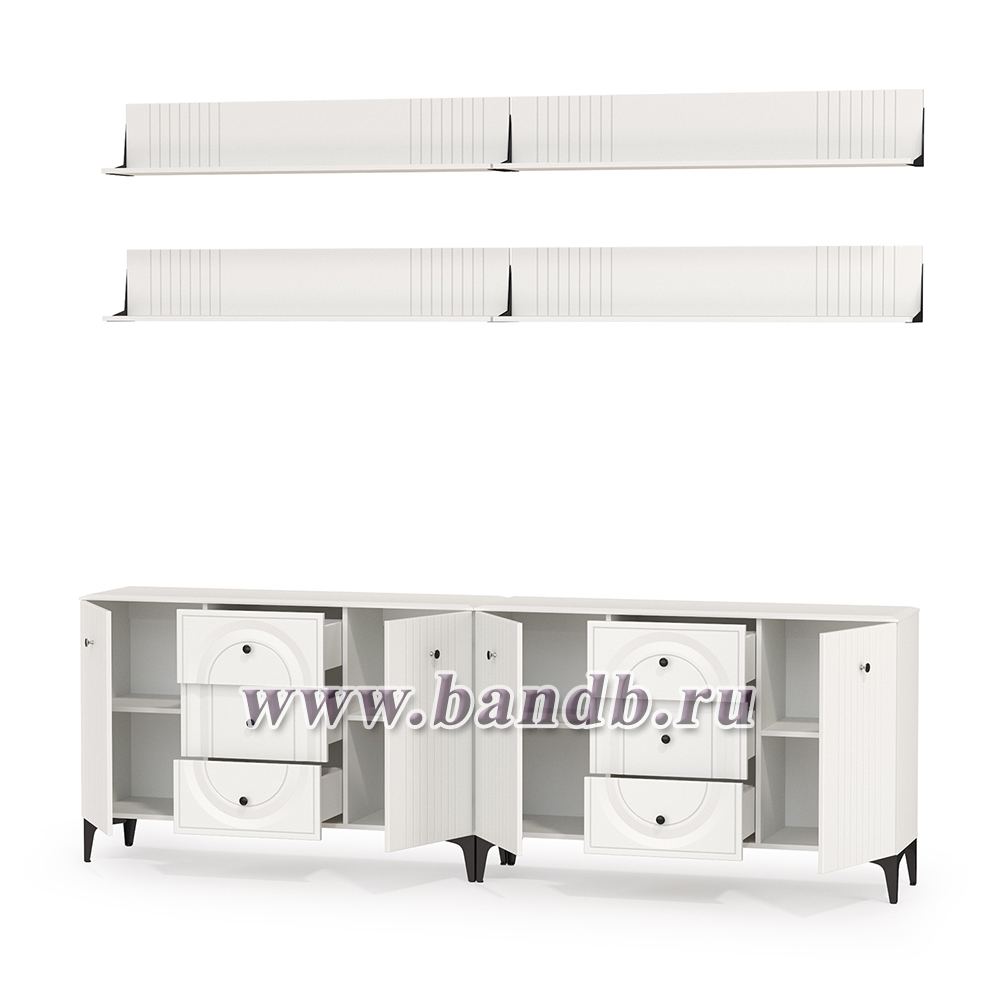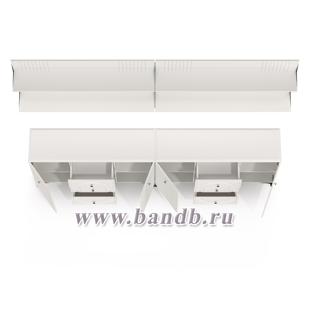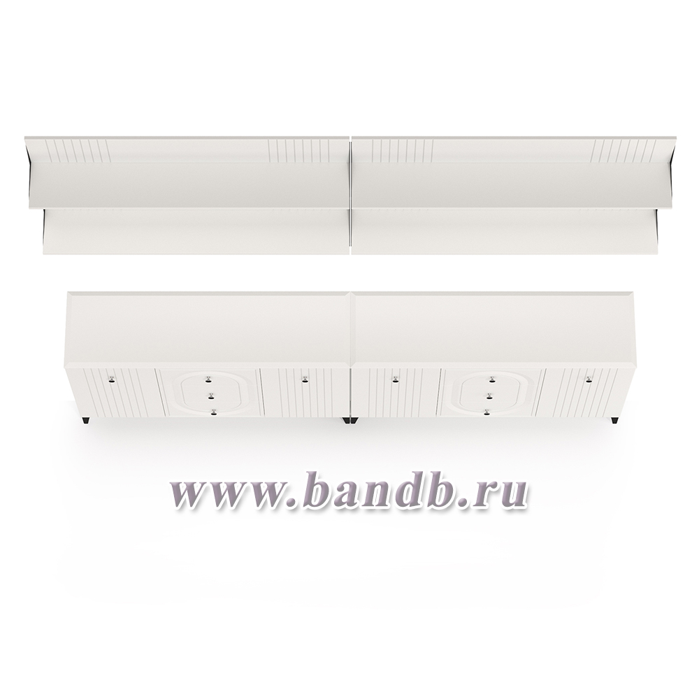 Два широких комода Валенсия и четыре навесных полки цвет белый шагрень