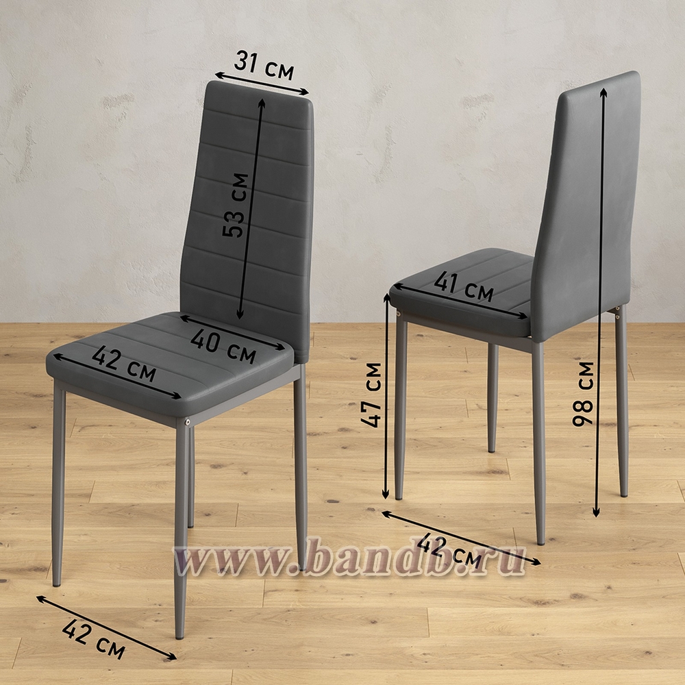 Габаритные размеры стула (ШхГхВ): 42х42х98 см (2 в комплекте).