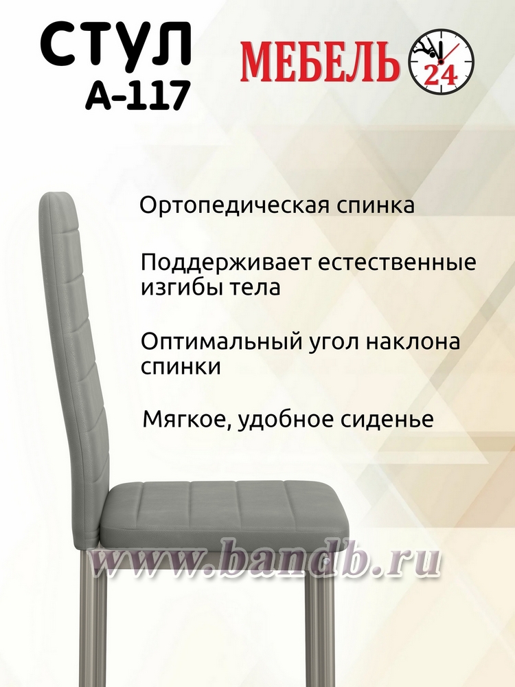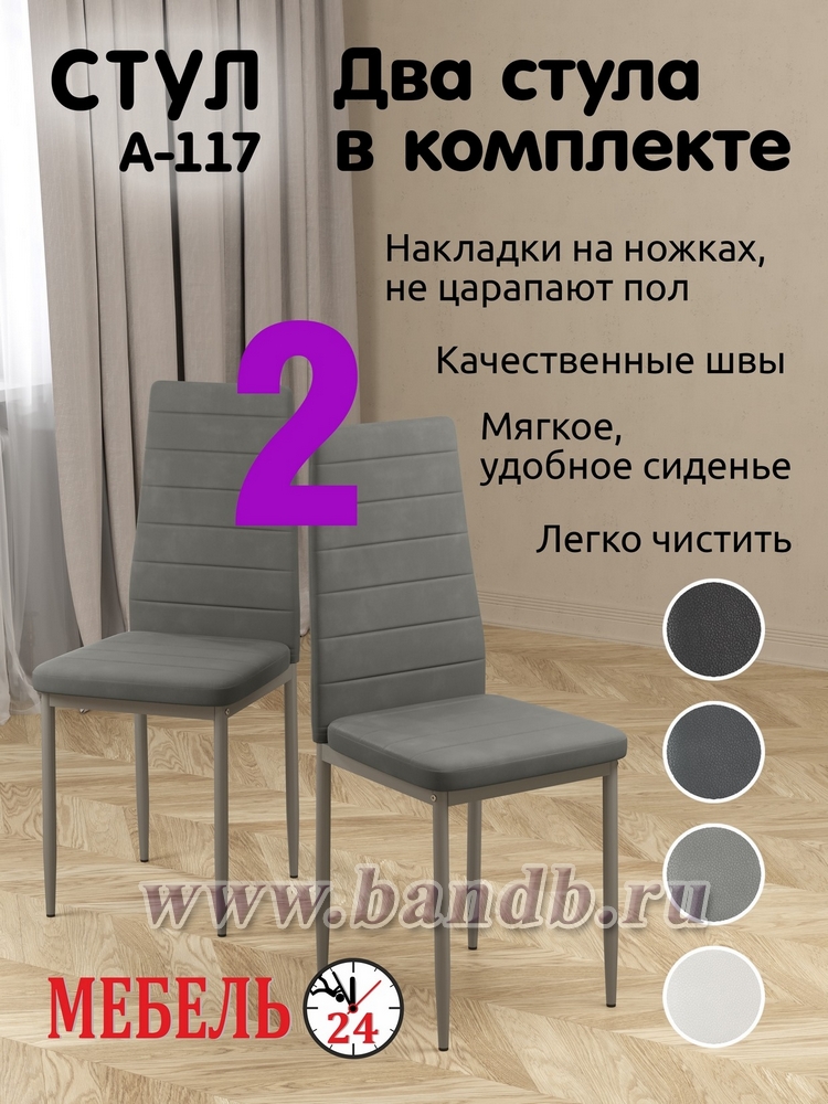 Гарантия: обмен неисправных частей двух стульев для кухни мягких Мебель-24 A-117 в течение двух недель с момента приобретения.