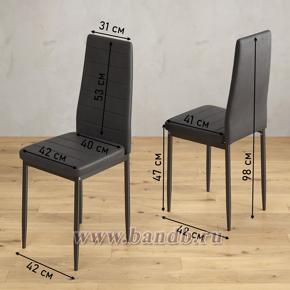 Габаритные размеры стула (ШхГхВ): 42х42х98 см (2 в комплекте).