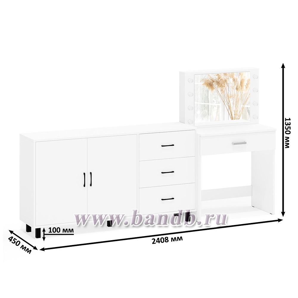 Комод-тумба 123-1604 и туалетный столик с подсветкой СТ-4 цвет белый