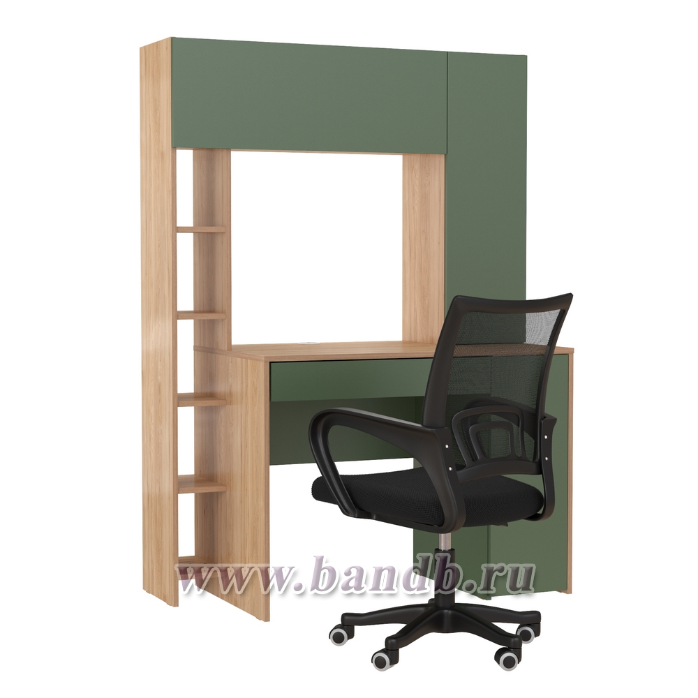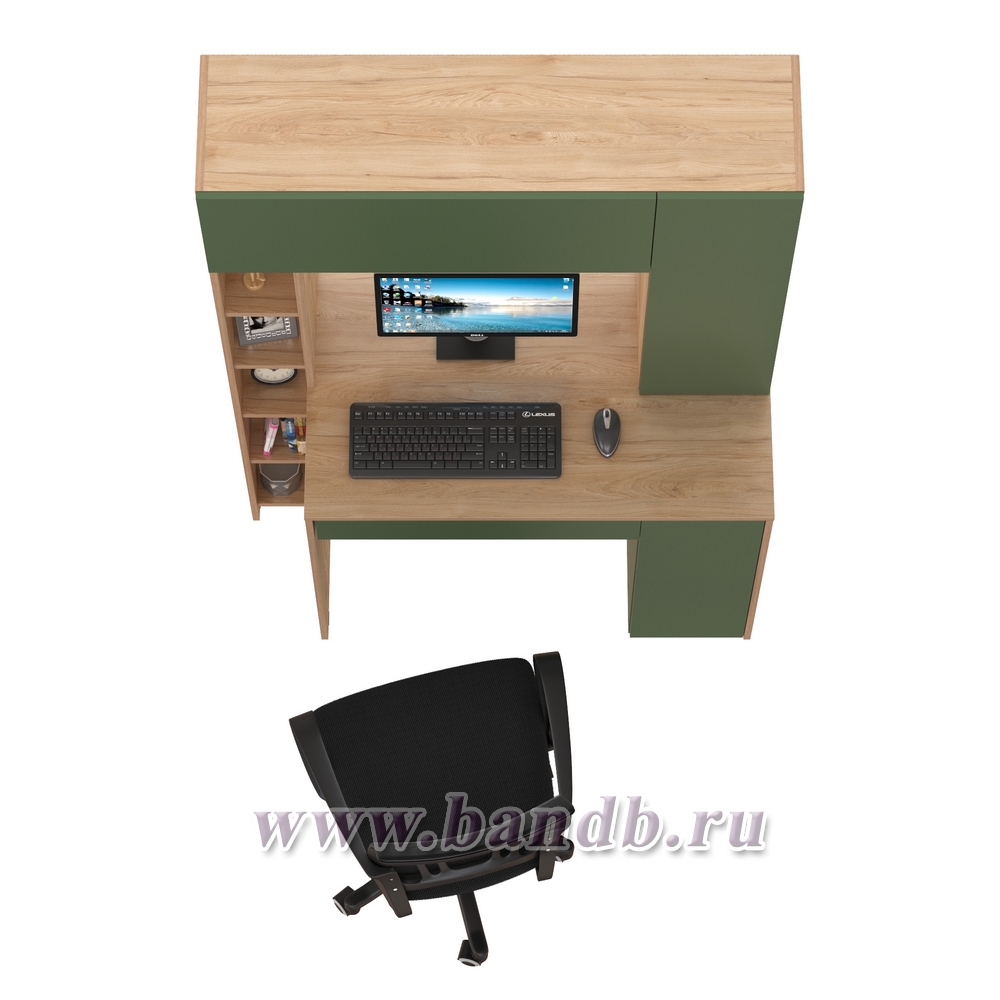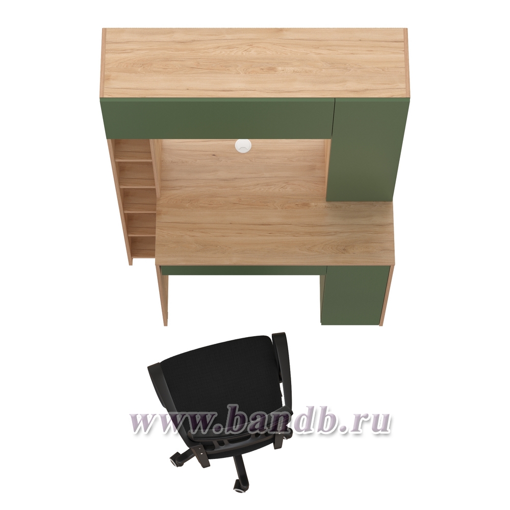 Комплект из компьютерного стола Комфорт 12.71 и кресла 103 цвет гикори рокфорд натуральный/дымчатый зелёный/кресло чёрное