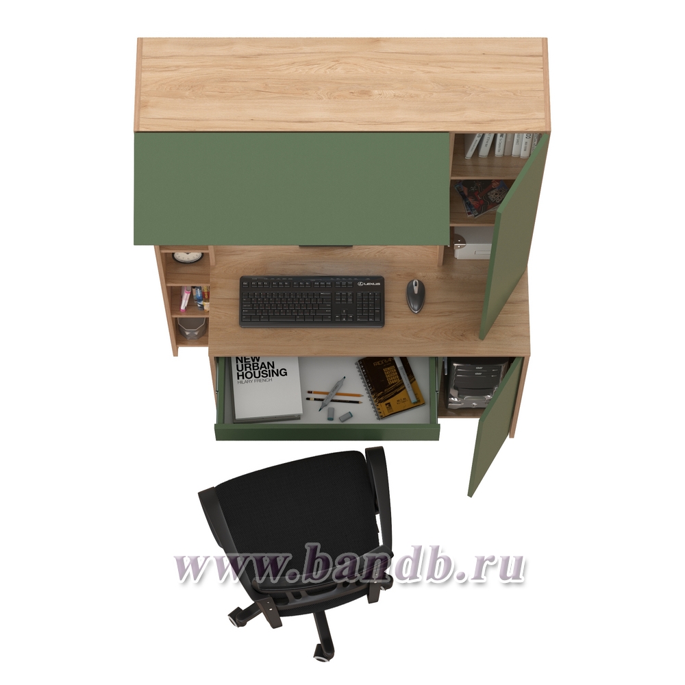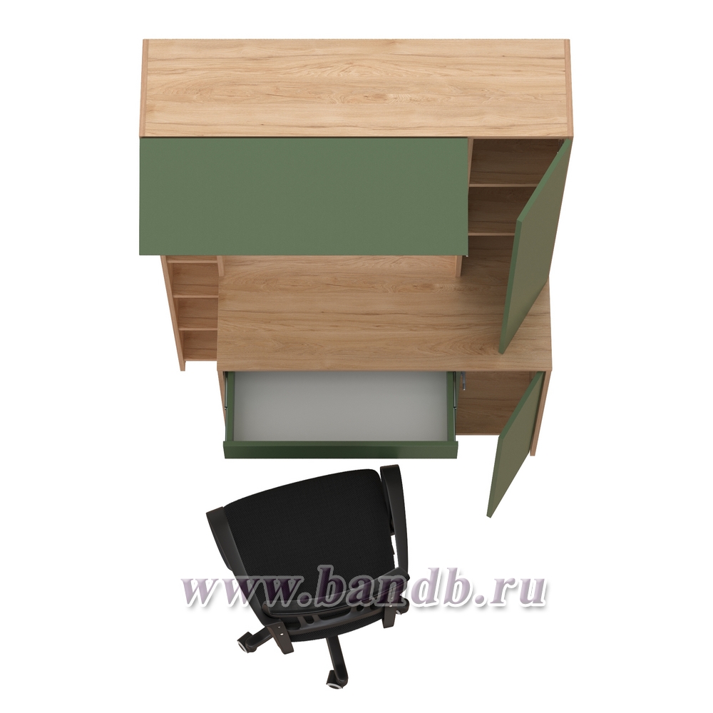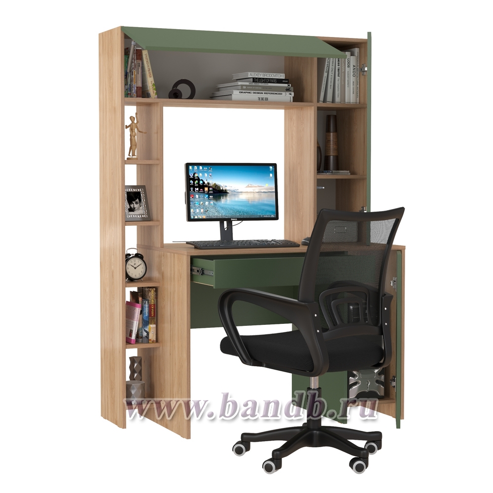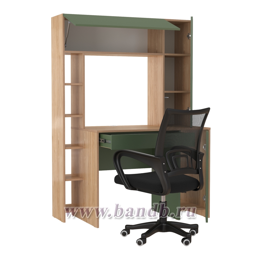 Комплект из компьютерного стола Комфорт 12.71 и кресла 103 цвет гикори рокфорд натуральный/дымчатый зелёный/кресло чёрное