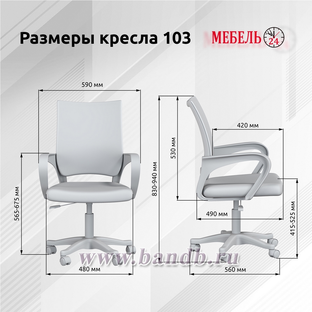 Габаритные размеры кресла (ШхГхВ): 59х56х83-94 см.