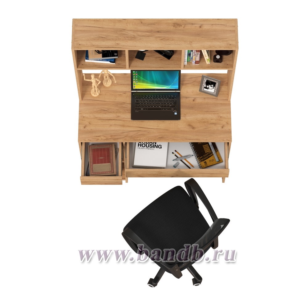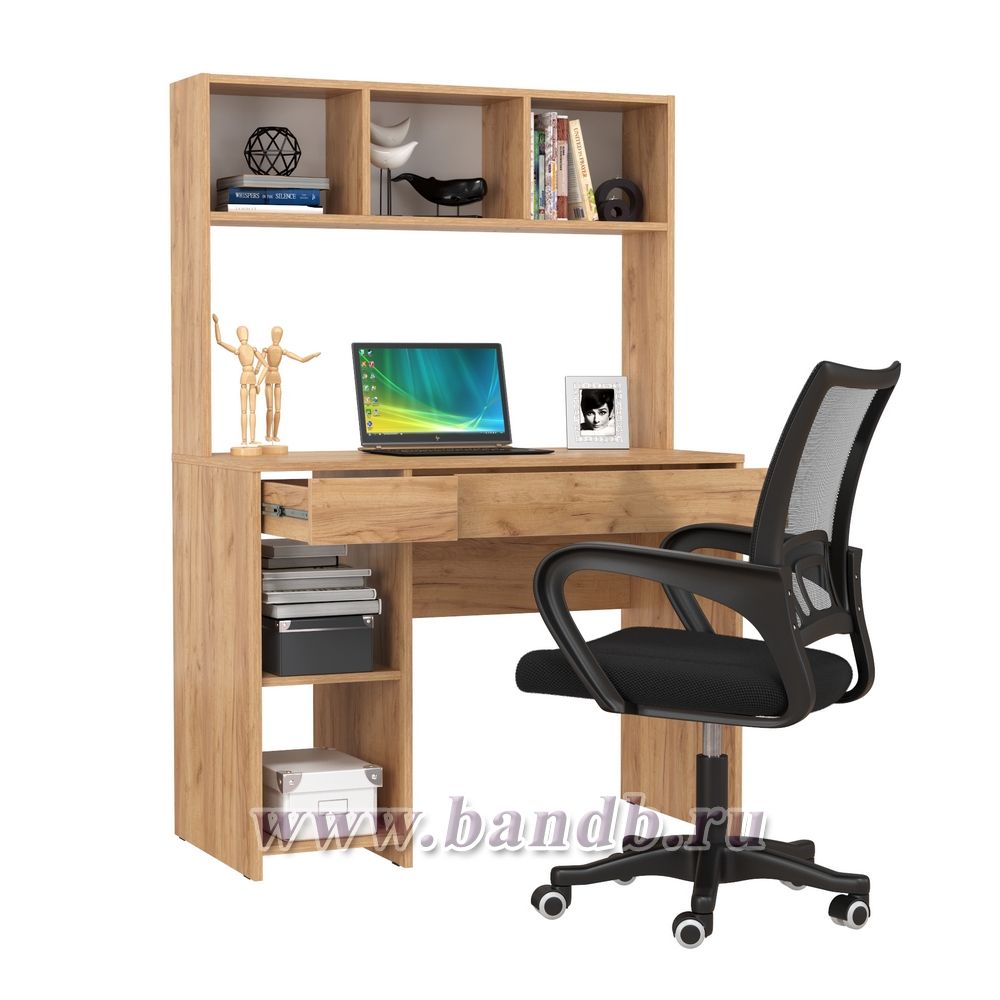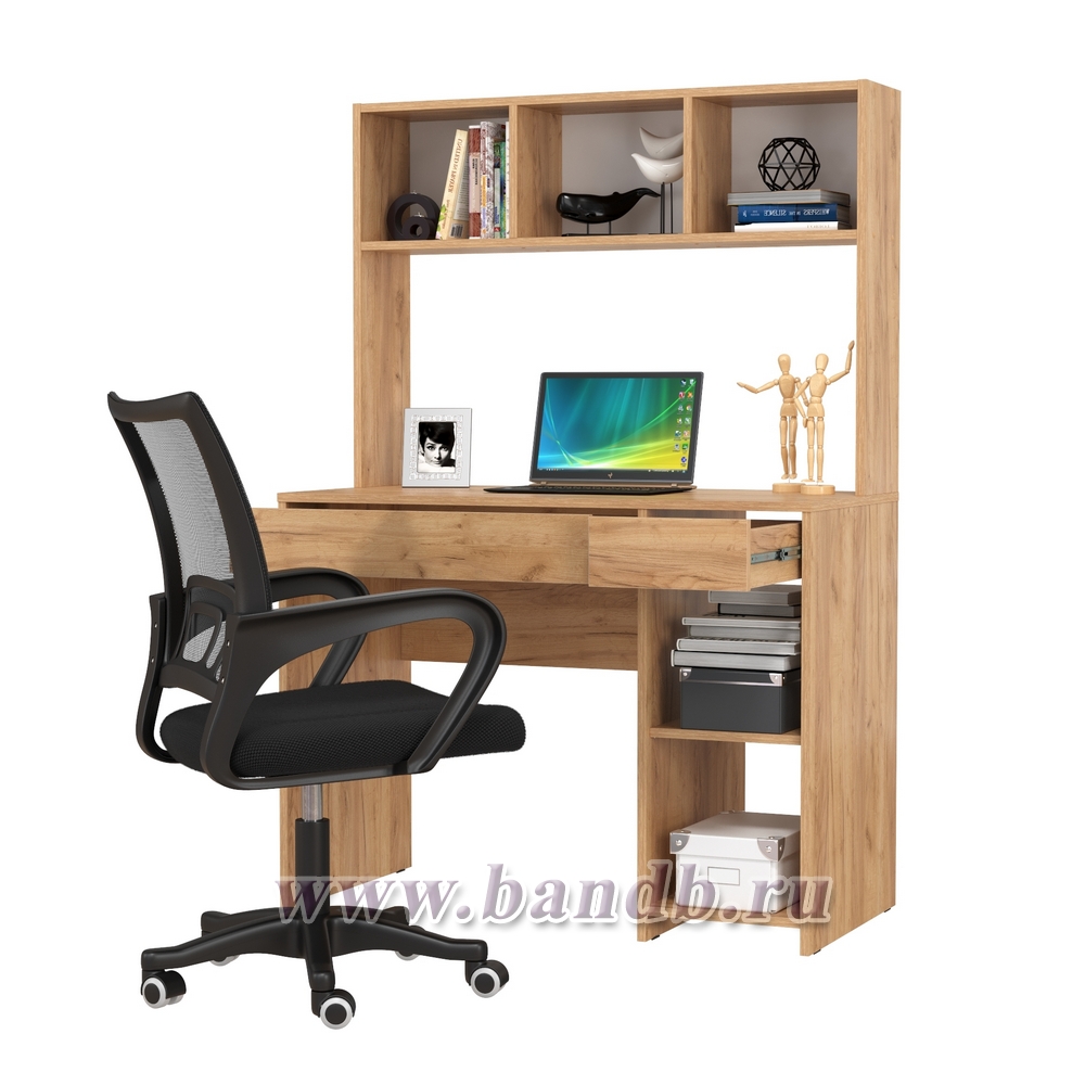 Компьютерный стол Моби Комфорт 12.77F цвет дуб крафт золотой с компьютерным креслом 103 чёрного цвета