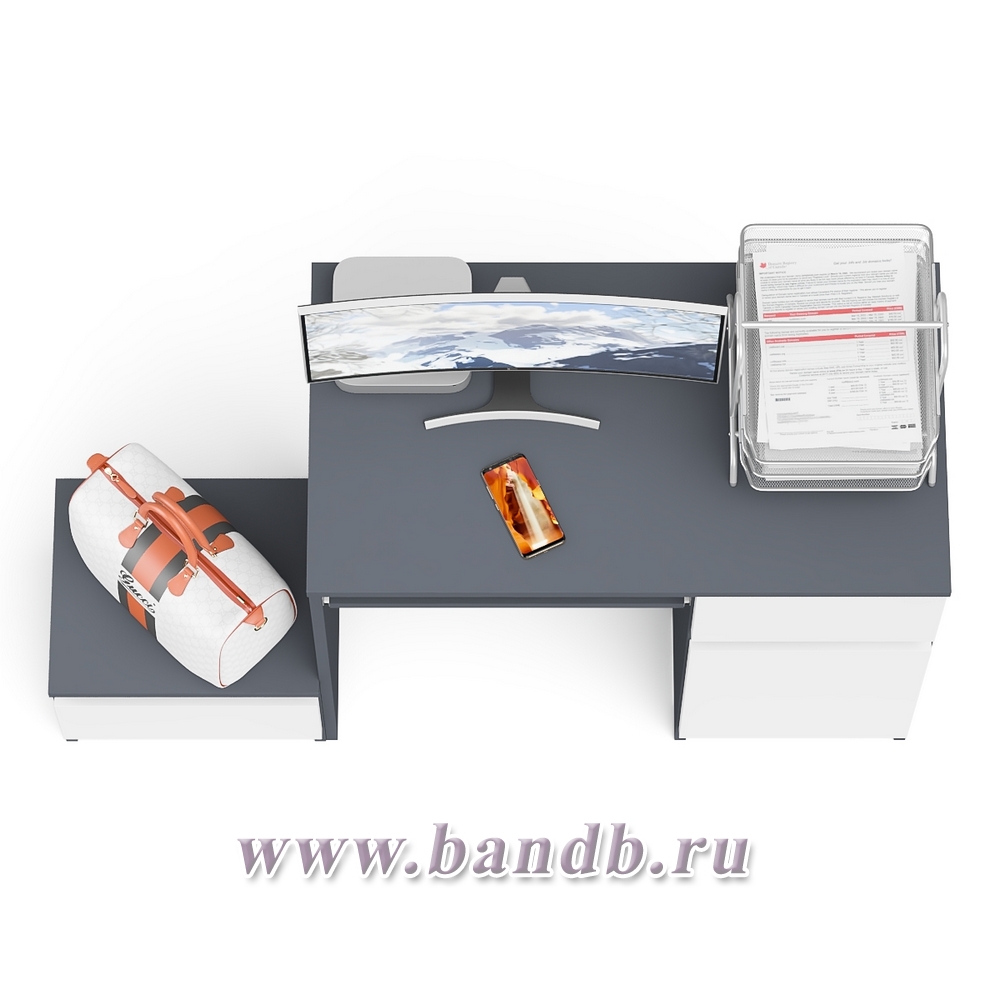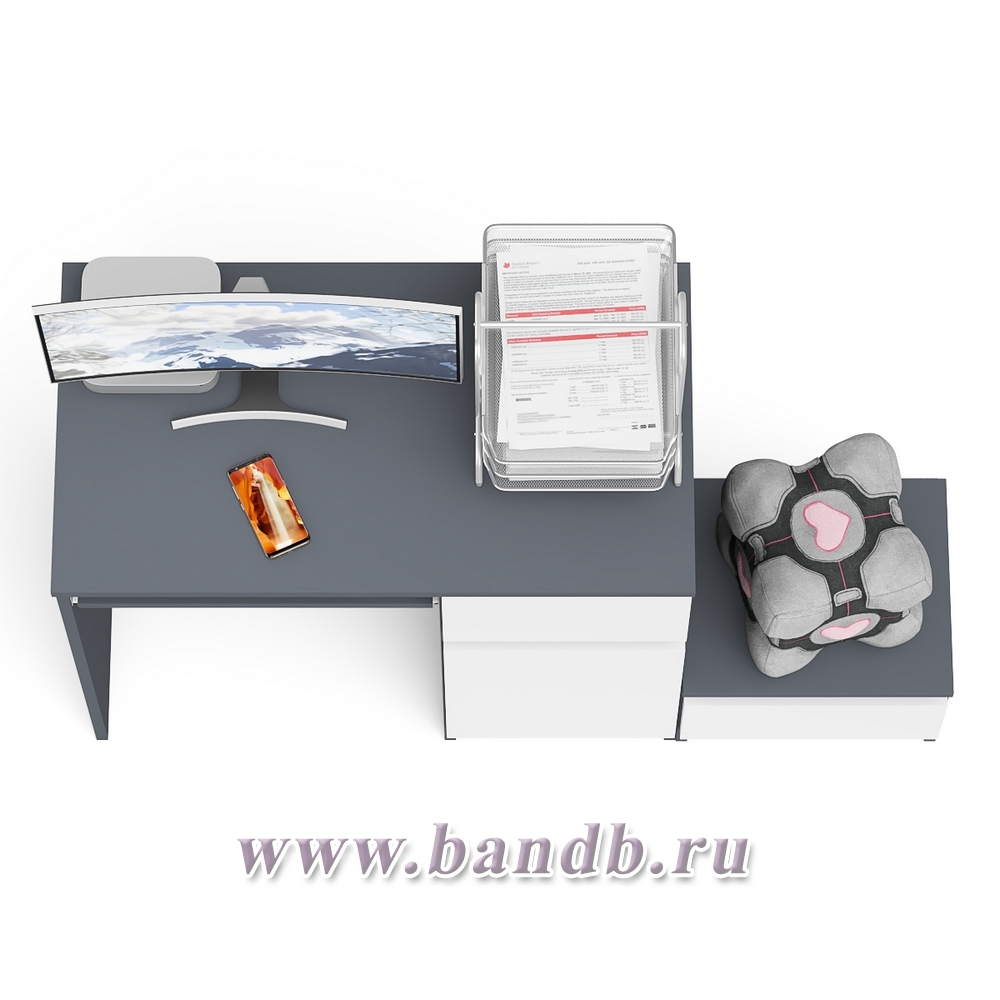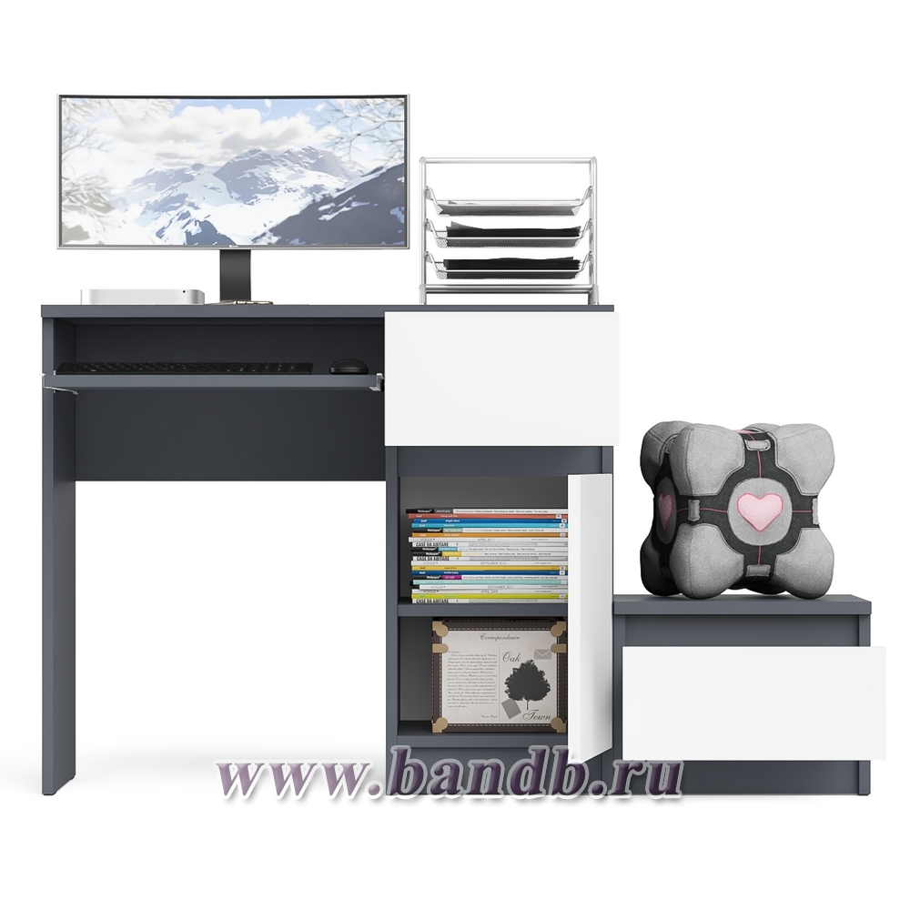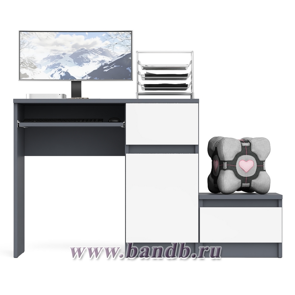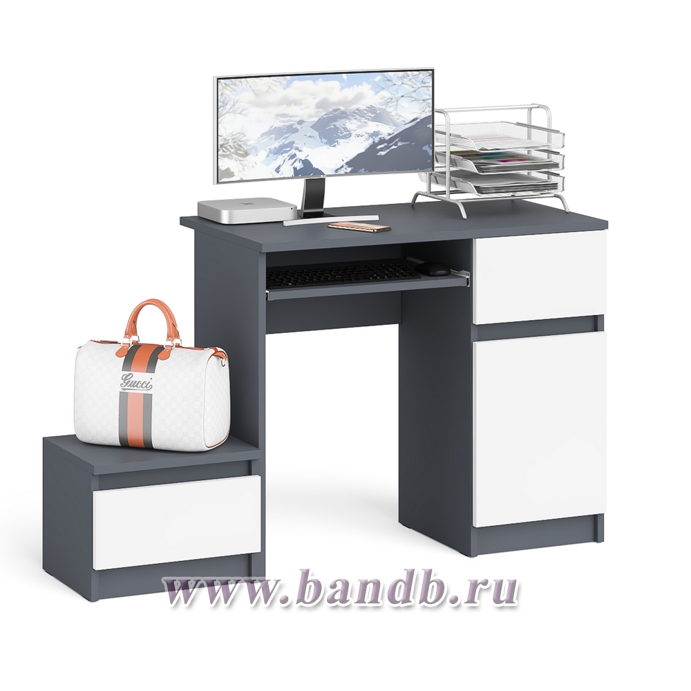 Компьютерный стол МС-1 правый с тумбой Мори цвет графит/белый