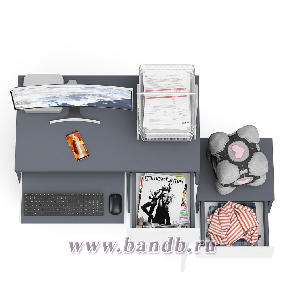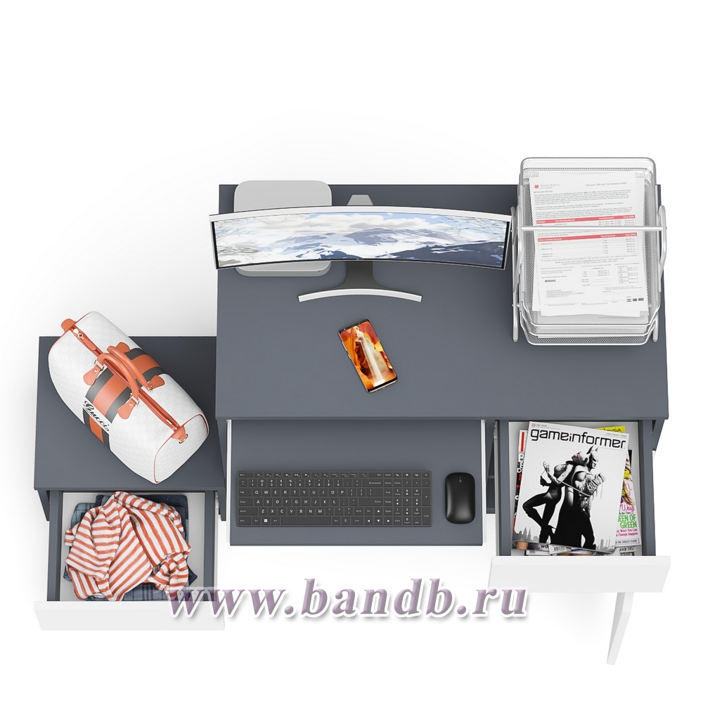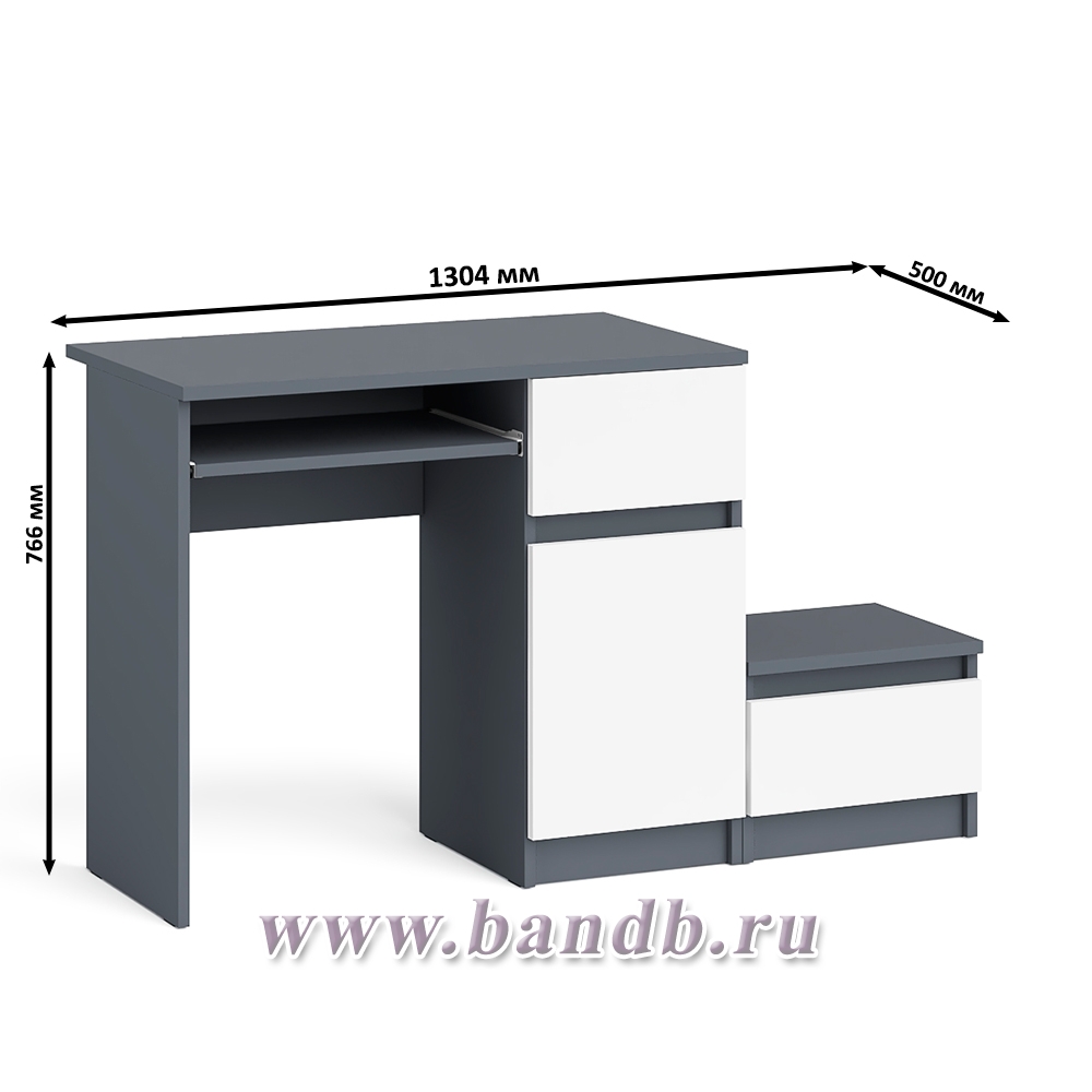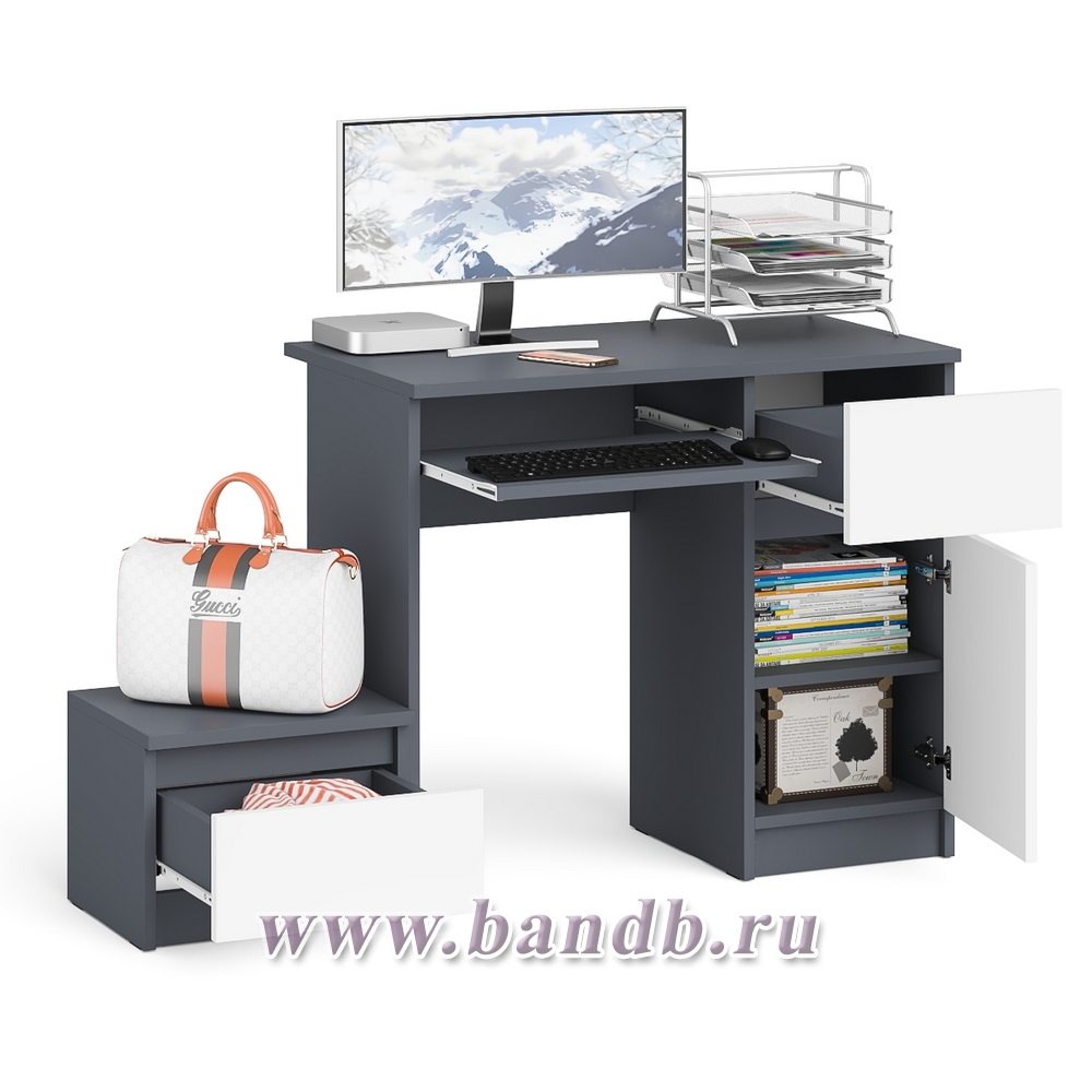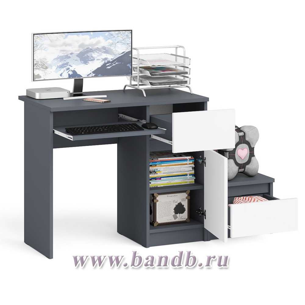 Компьютерный стол МС-1 правый с тумбой Мори цвет графит/белый