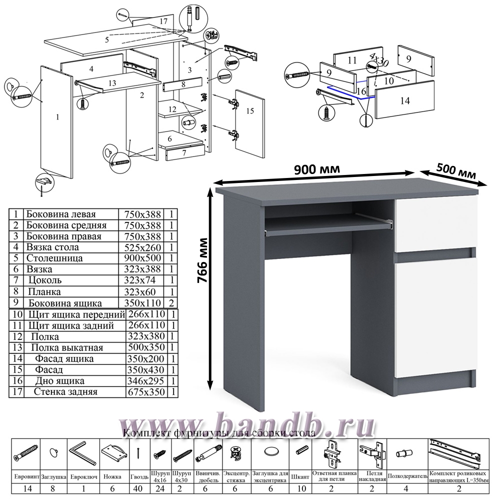 Габаритные размеры стола компьютерного (ШхГхВ): 90х50х76,6 см.