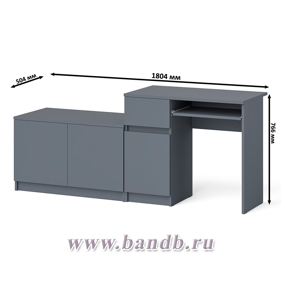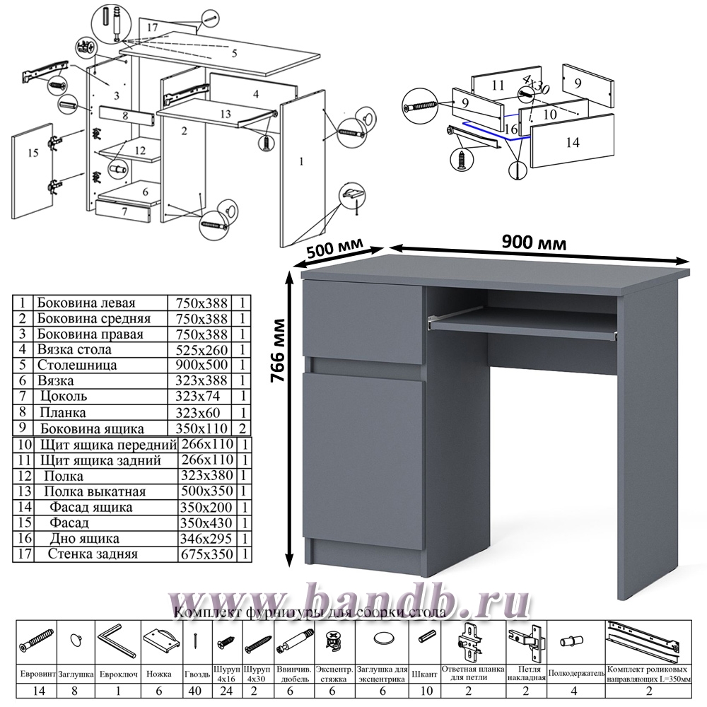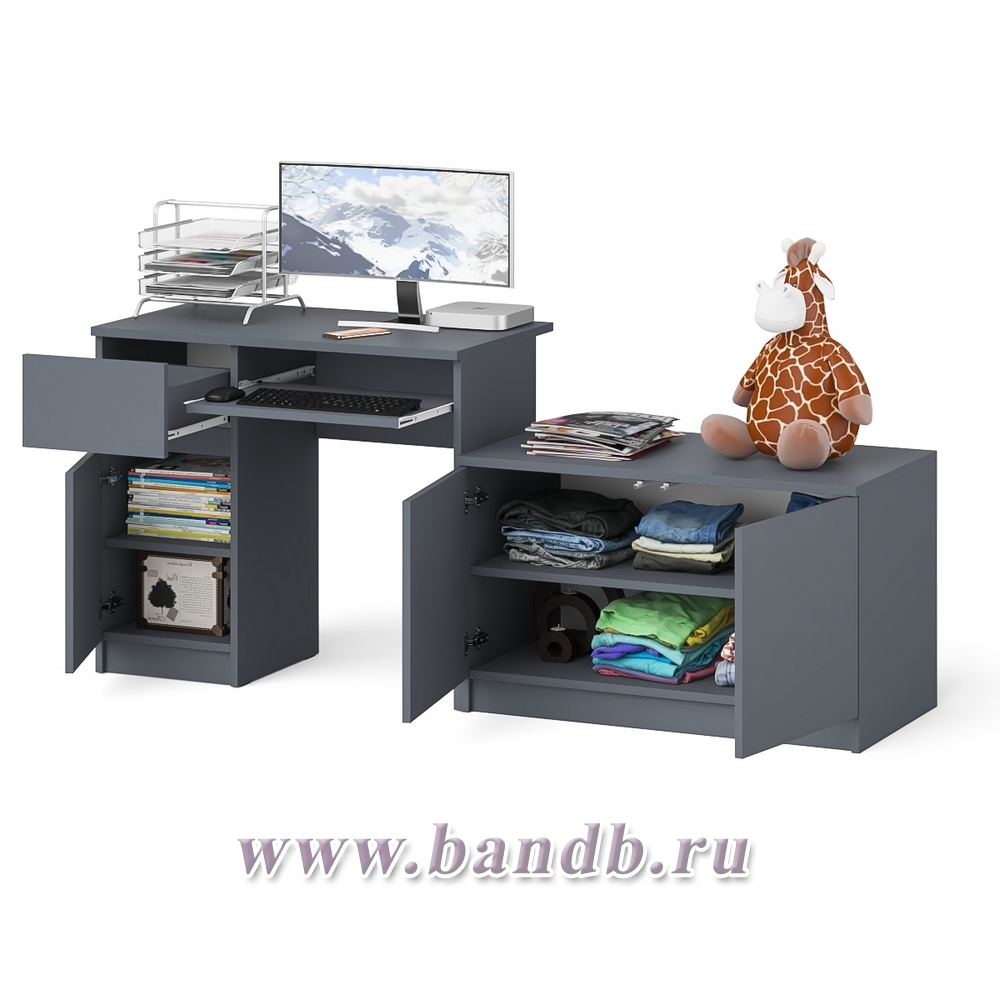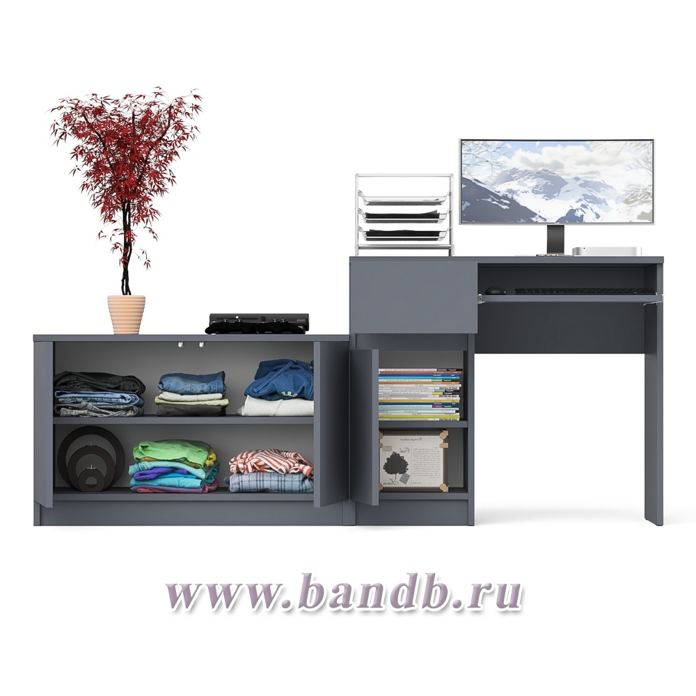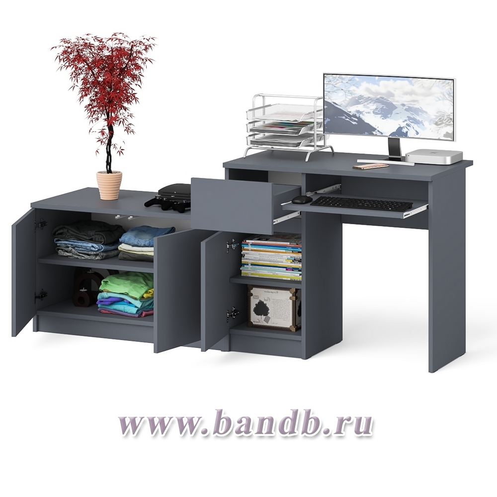 Компьютерный стол ящик и дверка Мори МС-1 левый с широкой тумбой 900 цвет графит