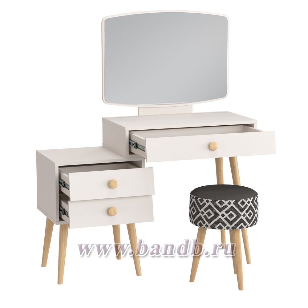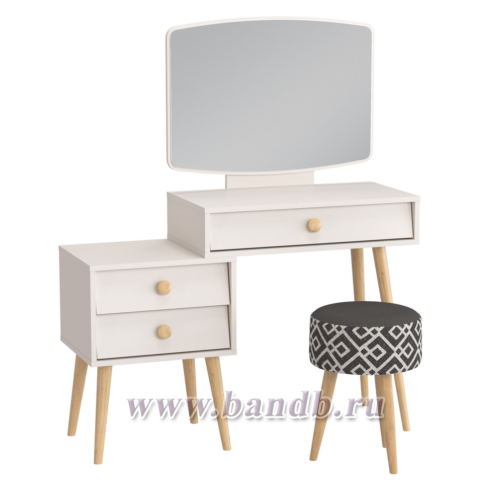 Косметический столик Афина с круглой банкеткой Юна цвет кашемир серый/ткань чёрная