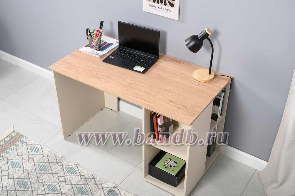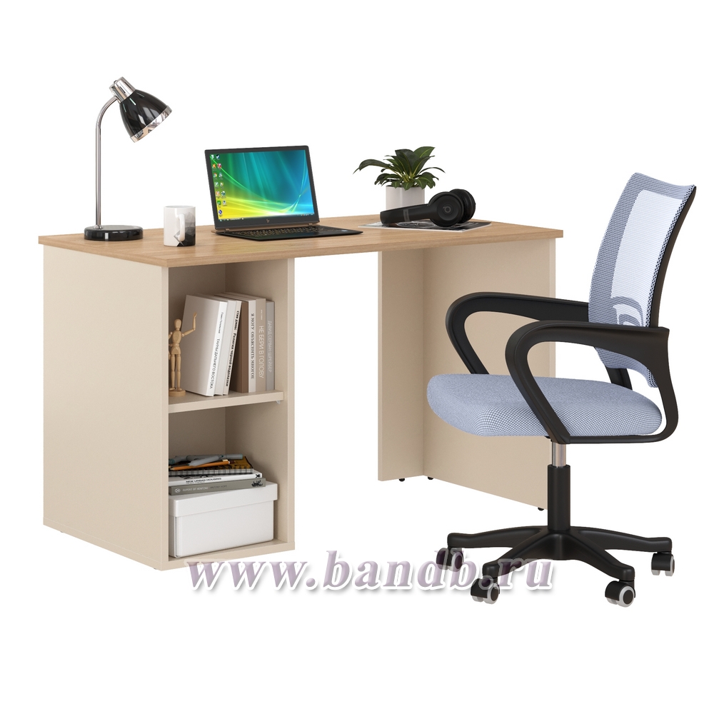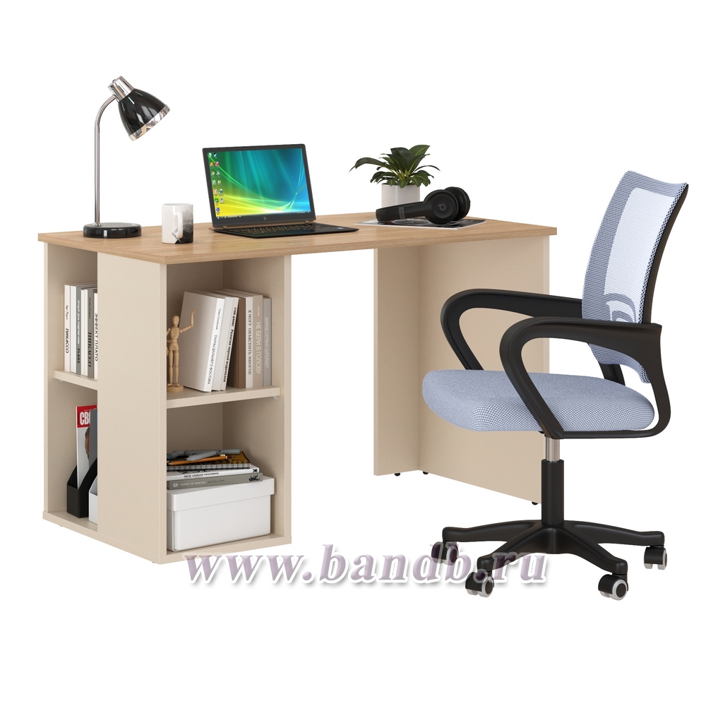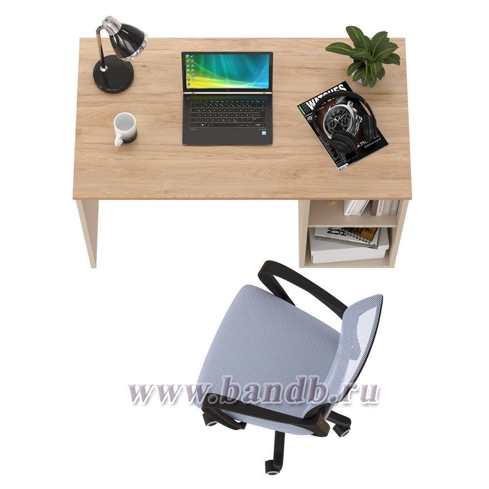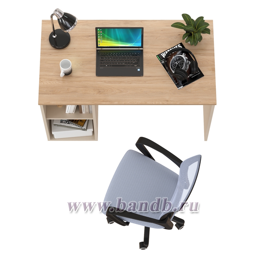 Лайт стол письменный 12.163 с компьютерным креслом 103 цвет сатин/гикори рокфорд натуральный/цвет кресла серый
