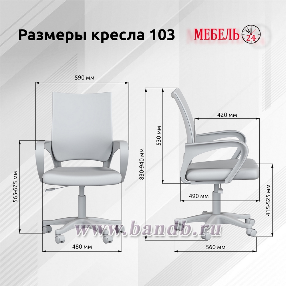 Габаритные размеры кресла (ШхГхВ): 59х56х83-94 см.