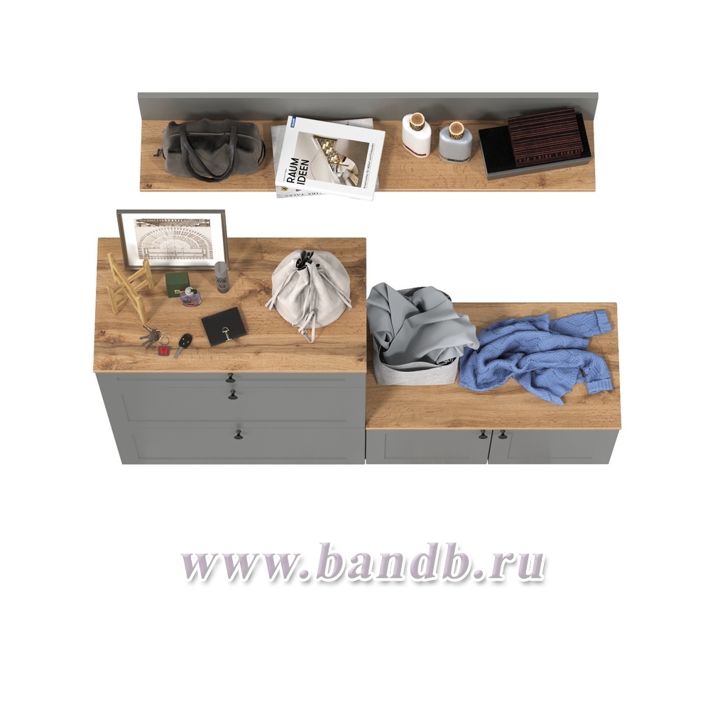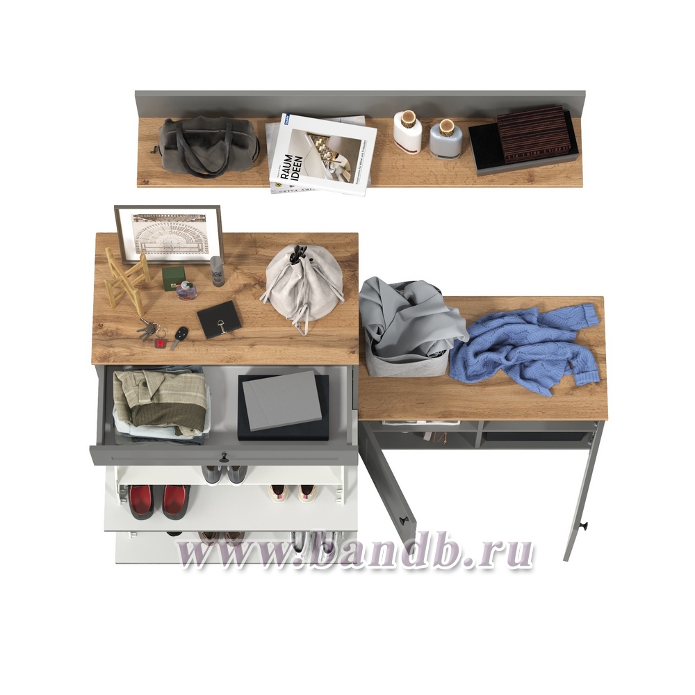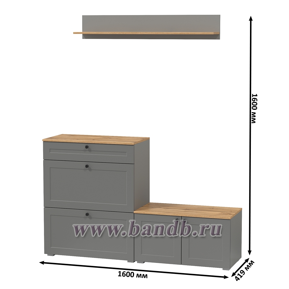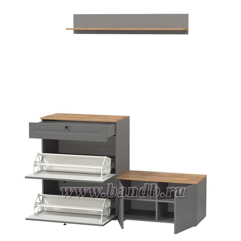 Остин обувница с тумбой с дверками и верхней полкой цвет серый графит/дуб крафт золотой