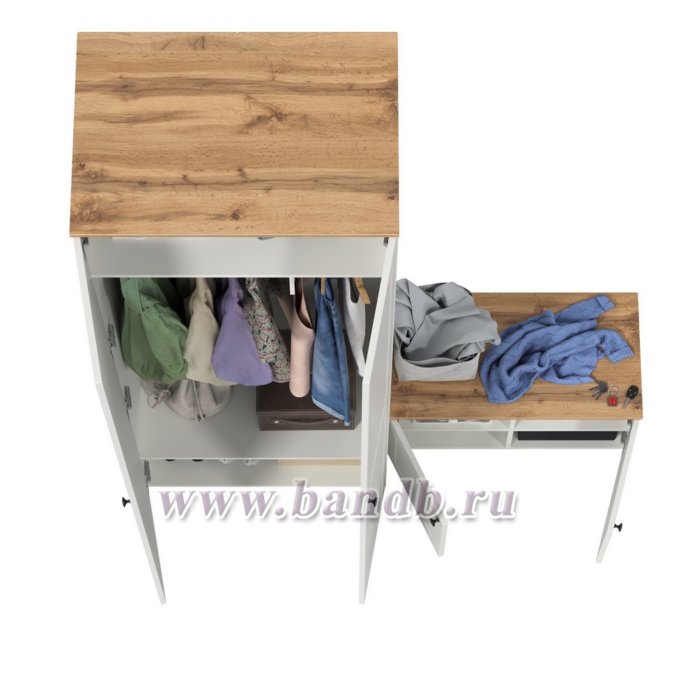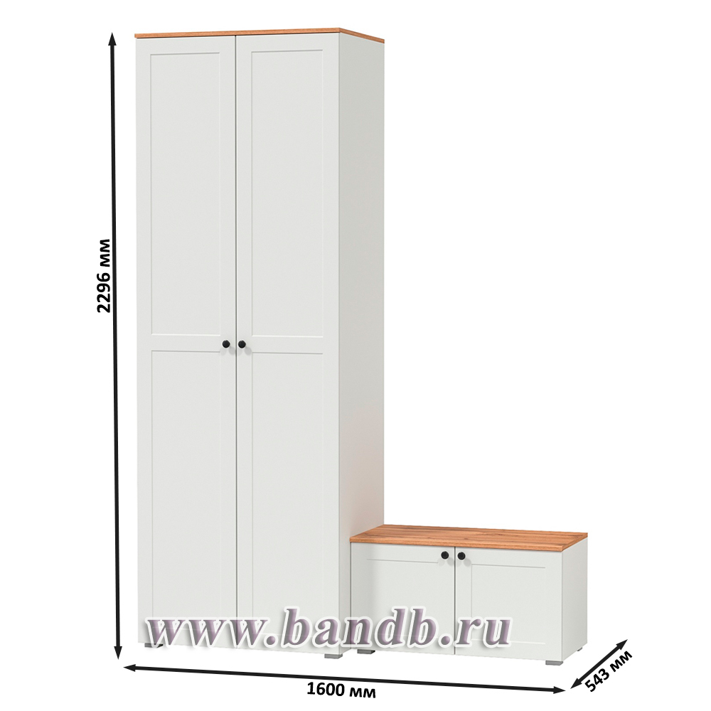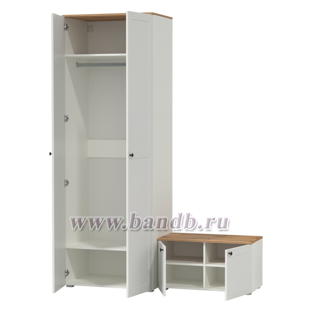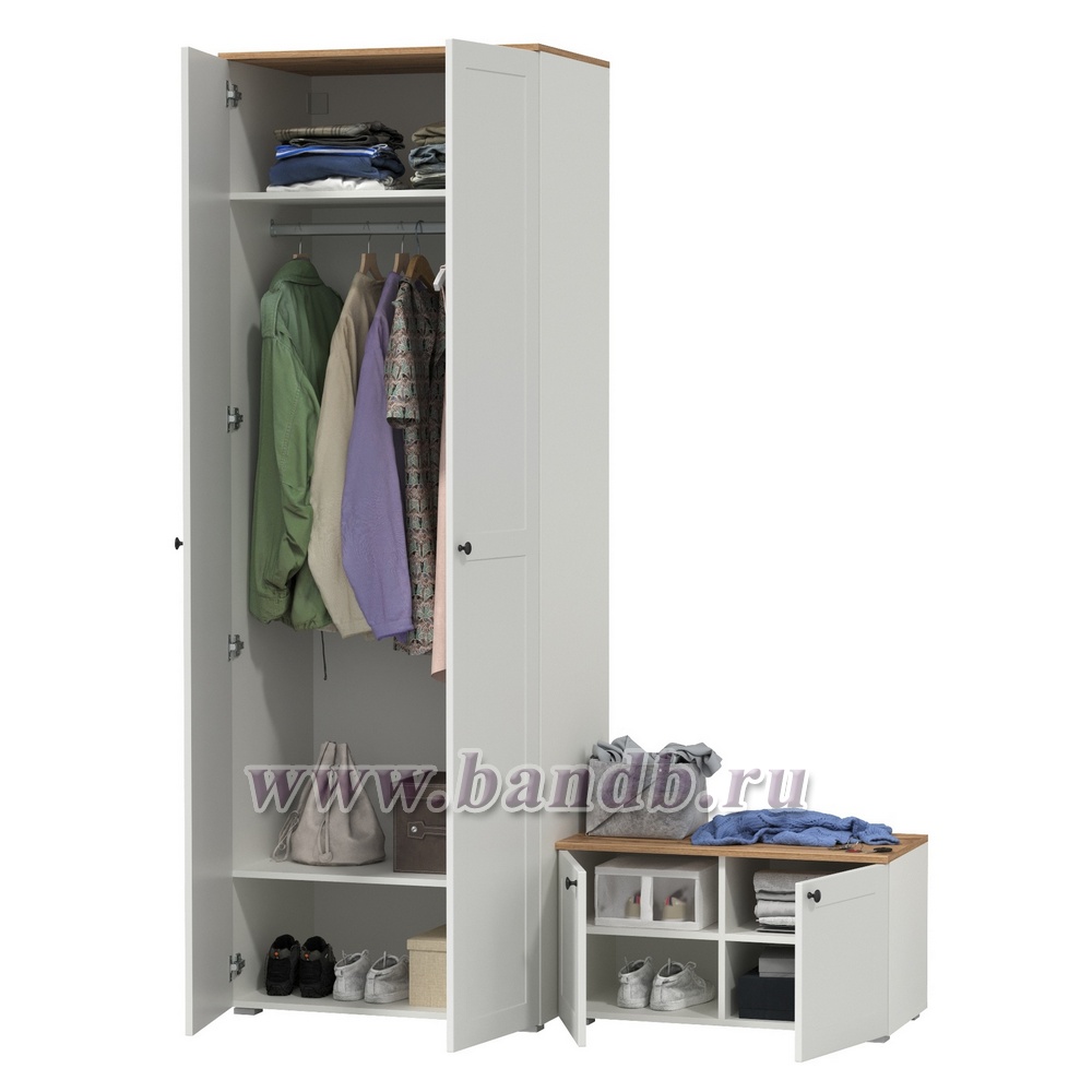 Шкаф для одежды и тумба две дверки Остин цвет белый шагрень/дуб крафт золотой