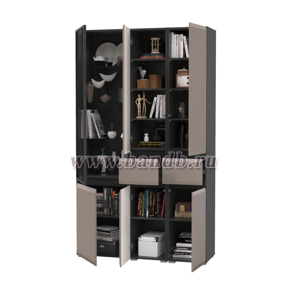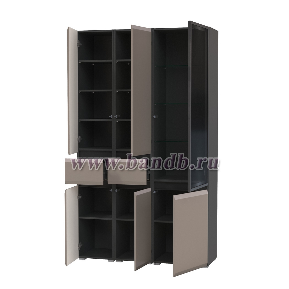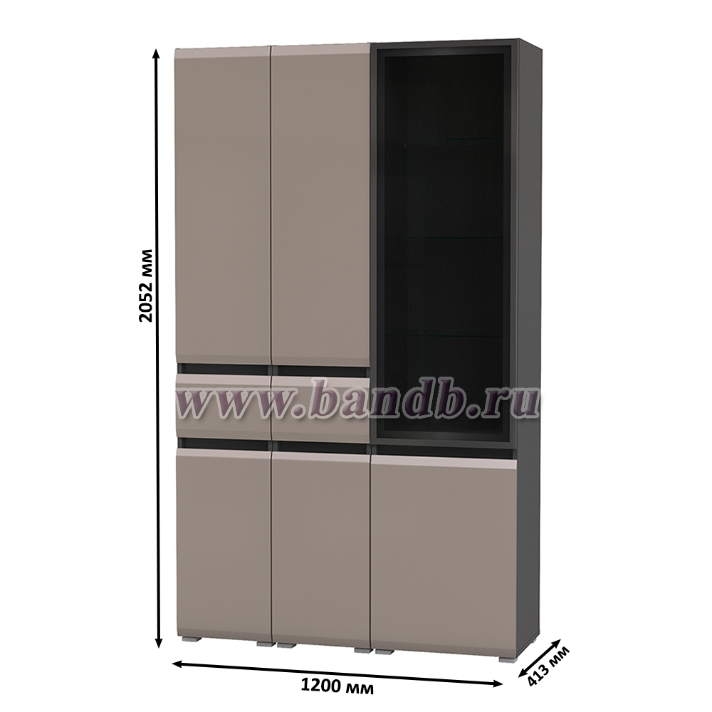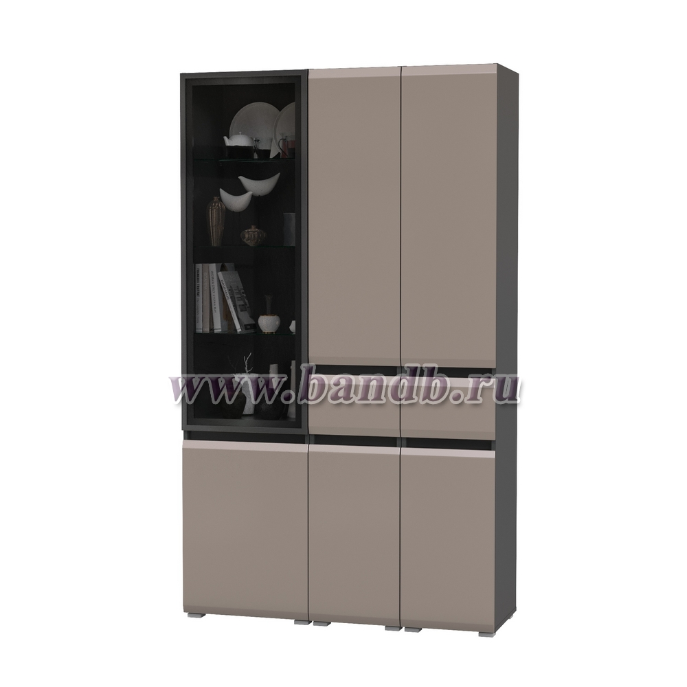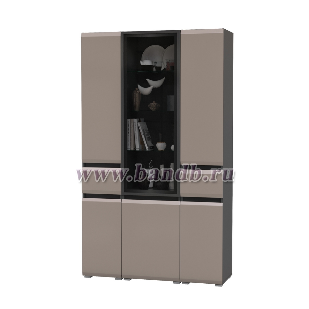 Шкаф-витрина 13.201 Сидней и два шкафа-пенала с ящиком цвет антрацит/МДФ веллюто капучино