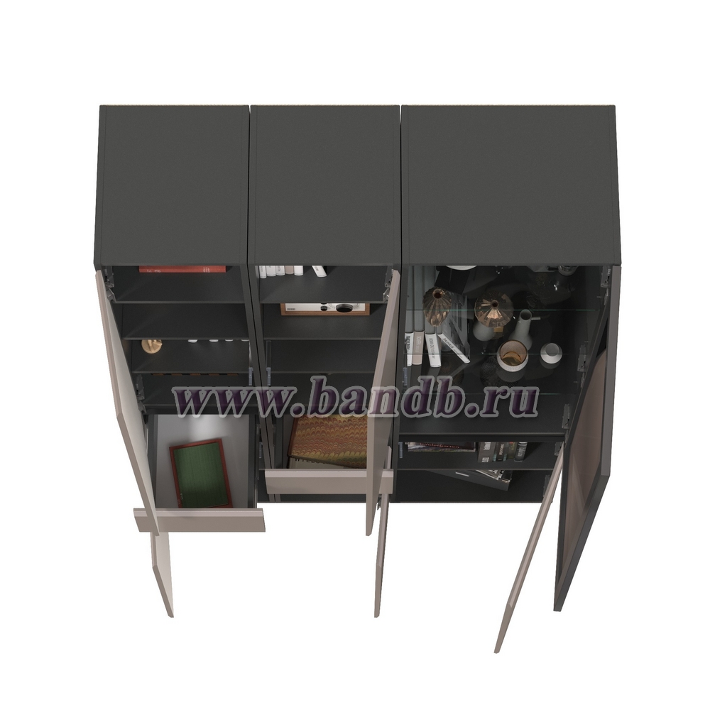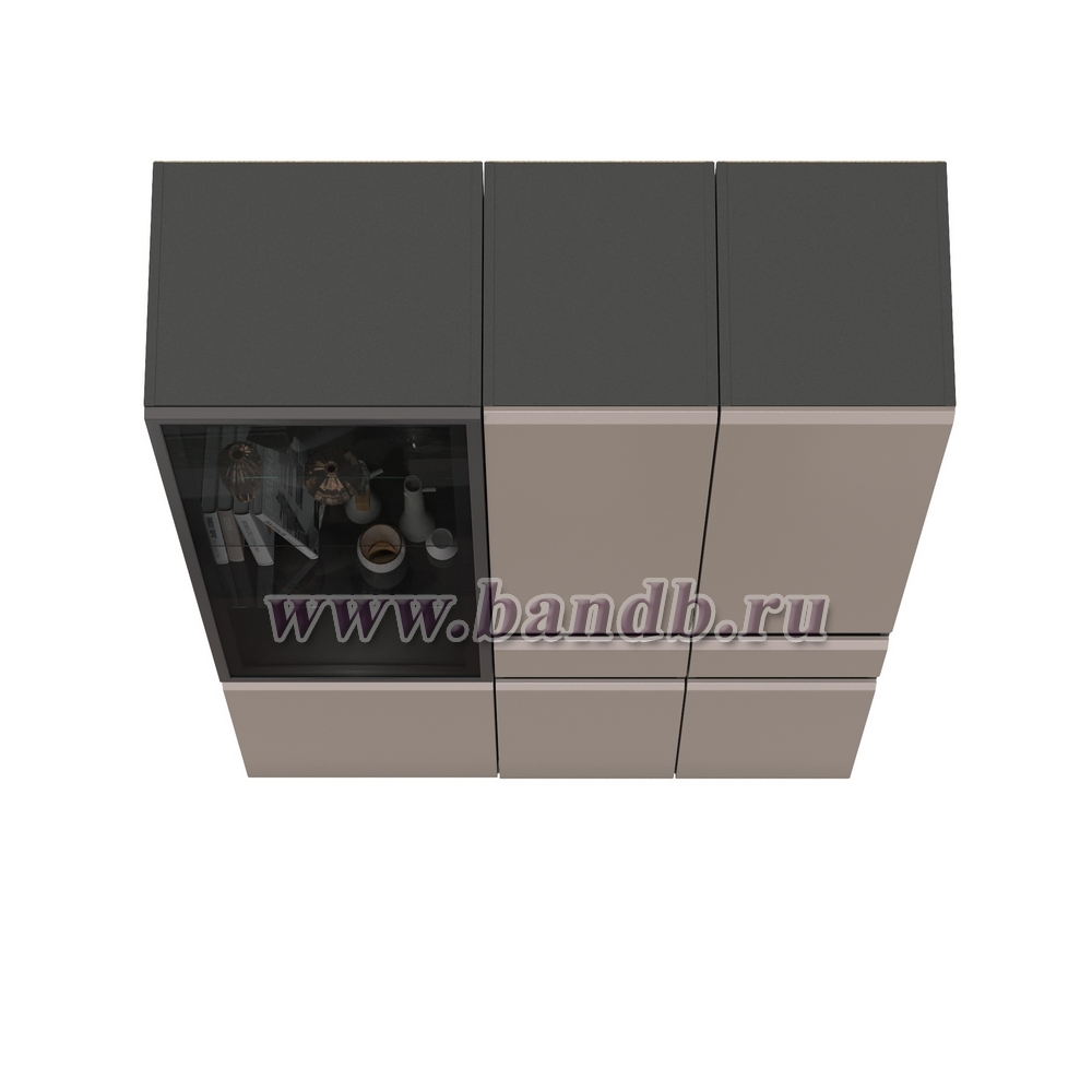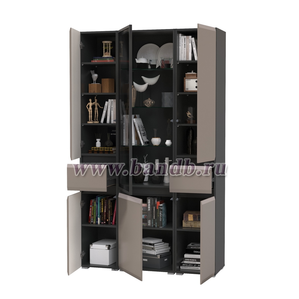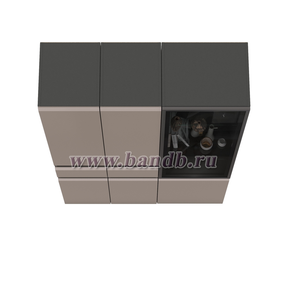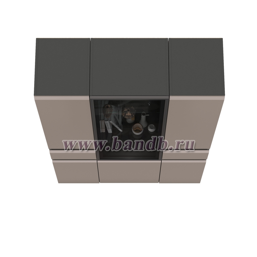 Шкаф-витрина 13.201 Сидней и два шкафа-пенала с ящиком цвет антрацит/МДФ веллюто капучино