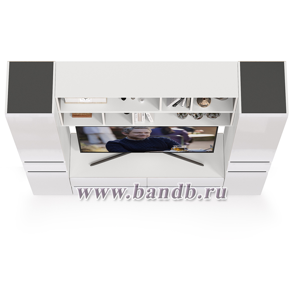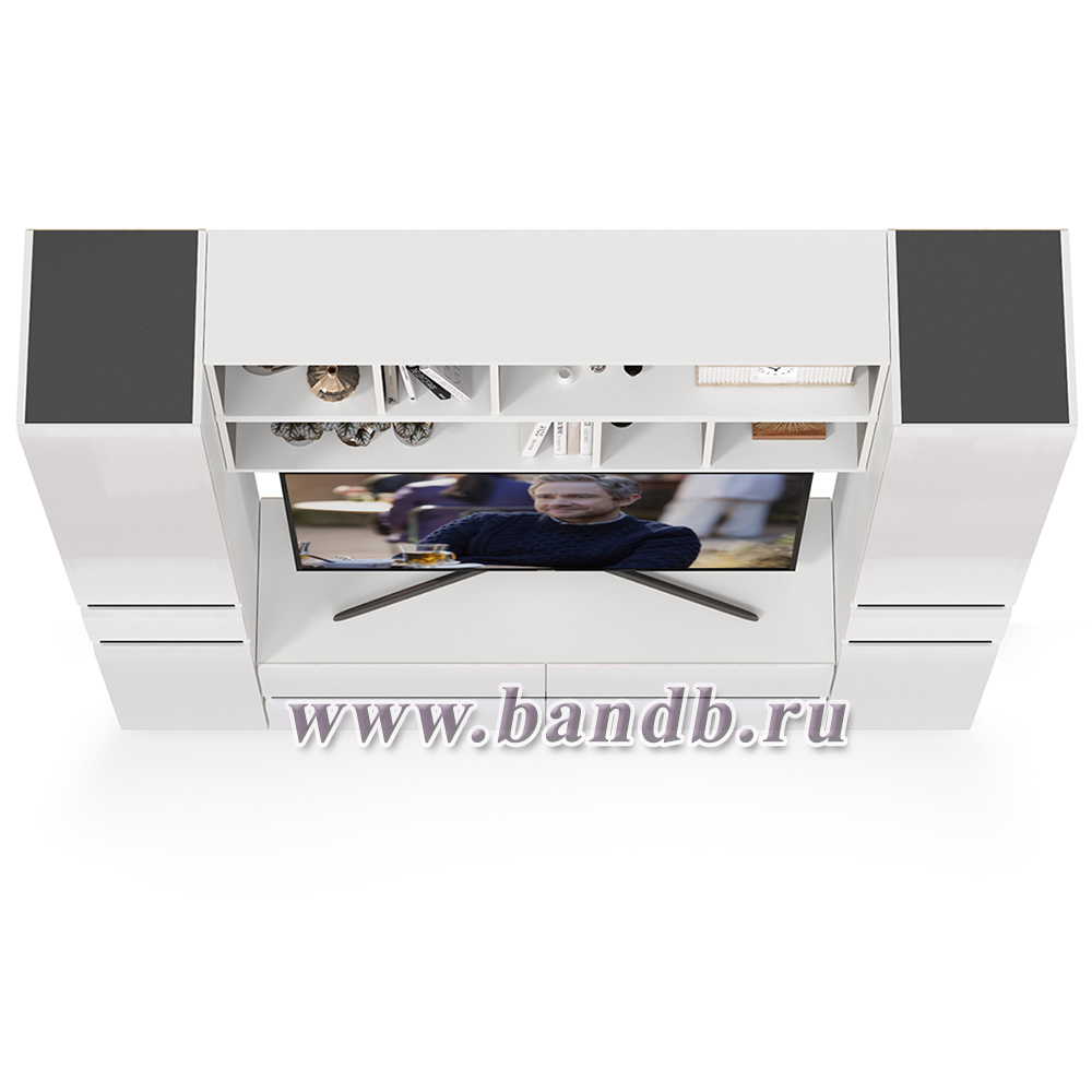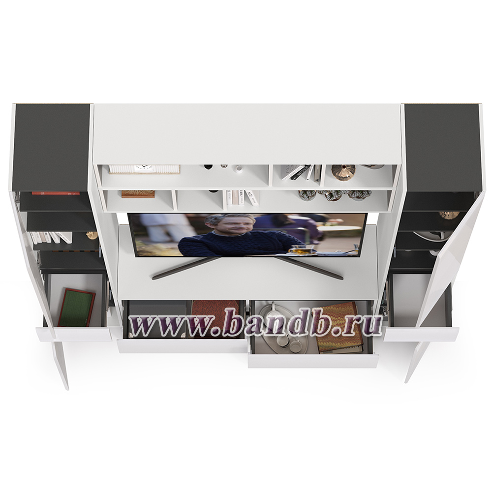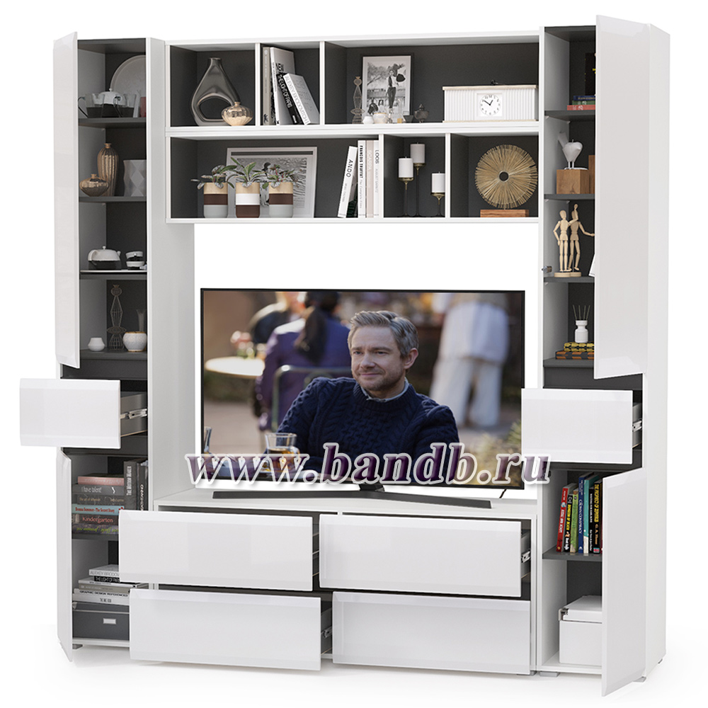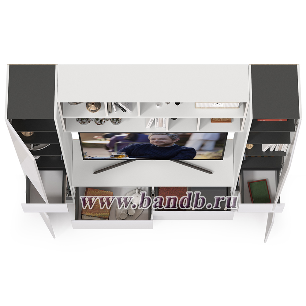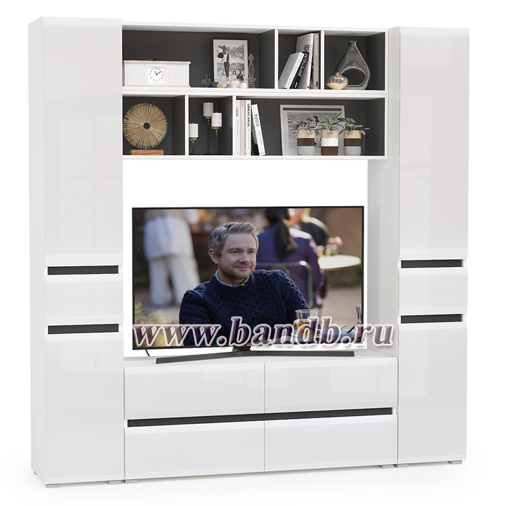 Сидней стенка для гостиной Комплектация № 40 цвет белый/чёрный/фасады МДФ белый глянец