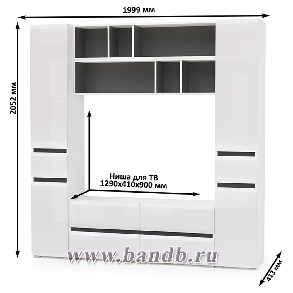 Ниша для ТВ (ШхГхВ): 129х41х90 см.