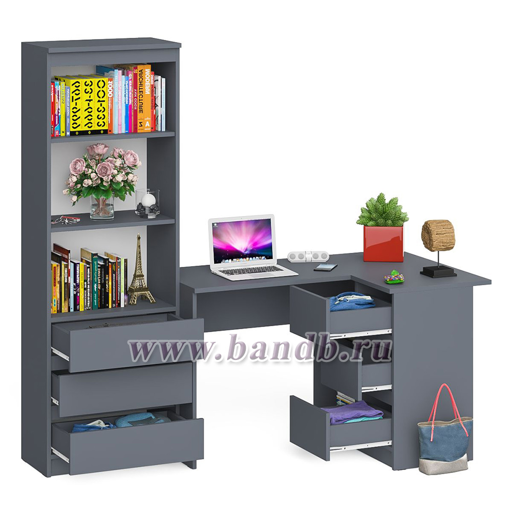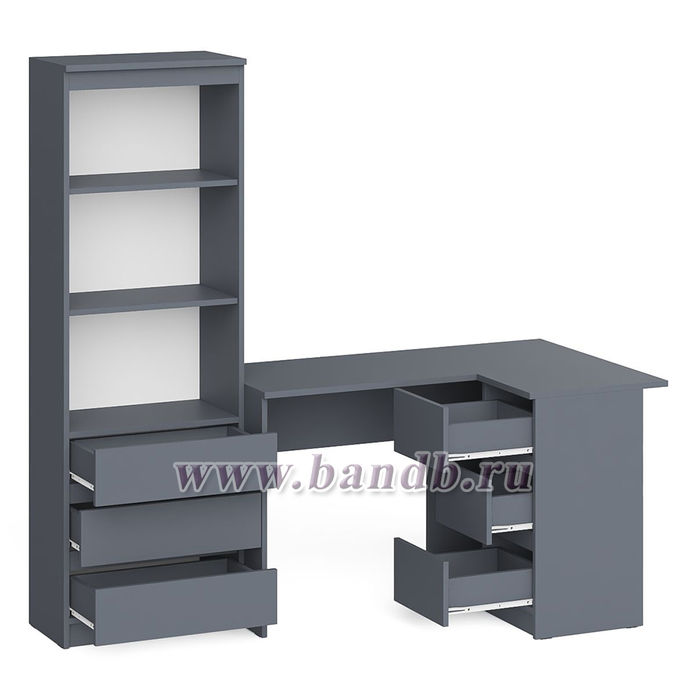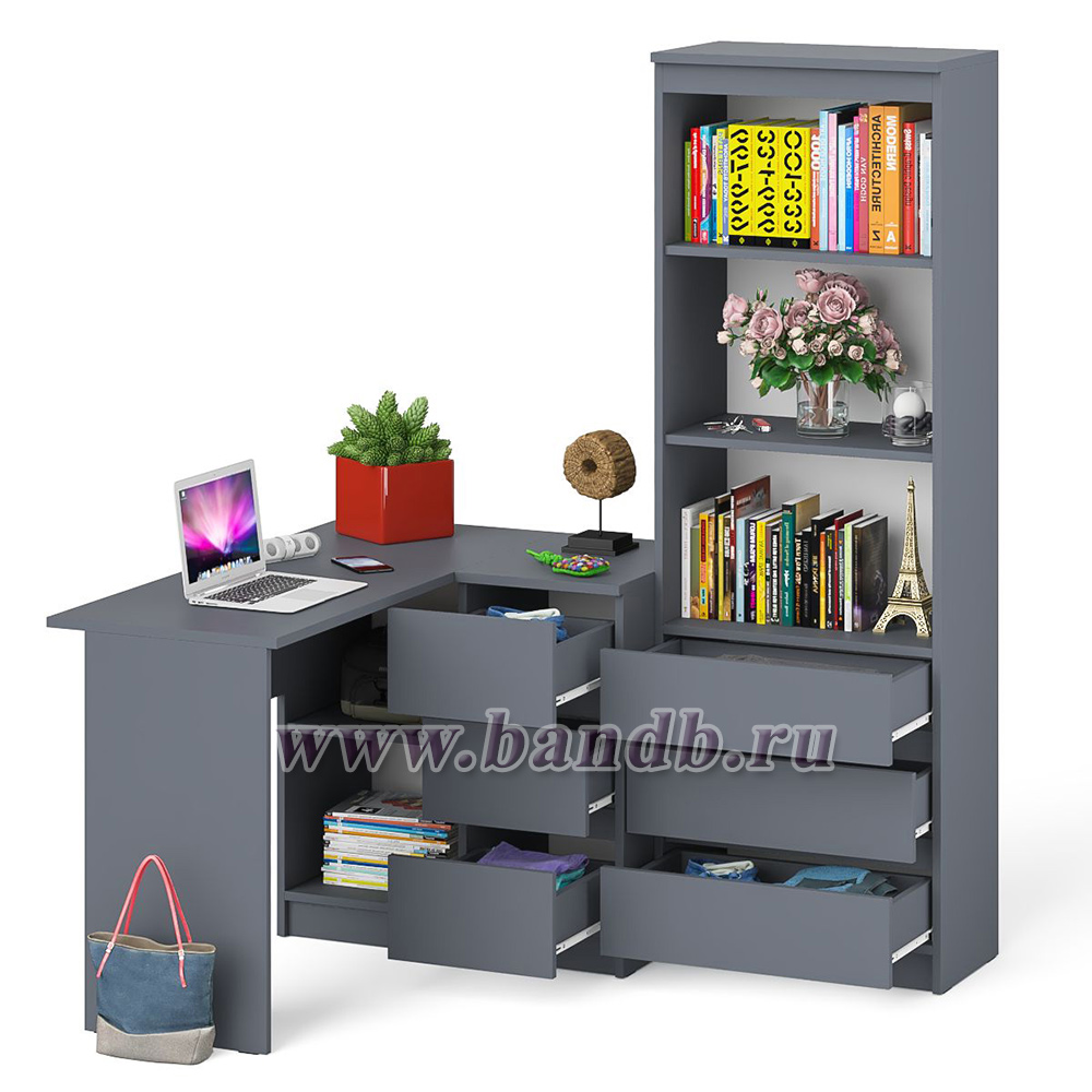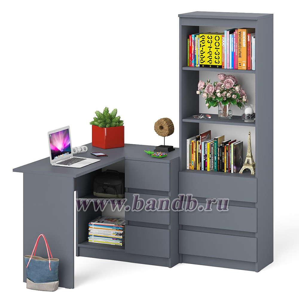 Стеллаж-комод три ящика Мори МСТ-600 с угловым компьютерным столом МС-16 тумба справа цвет графит