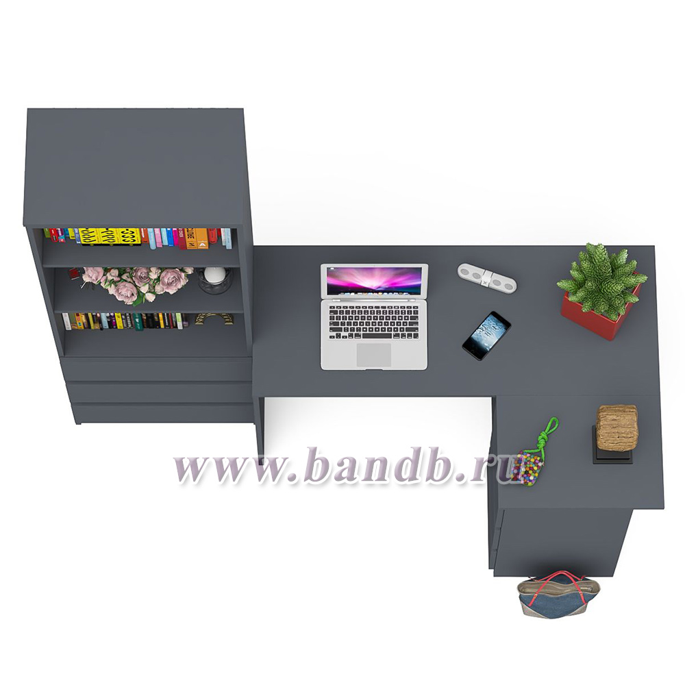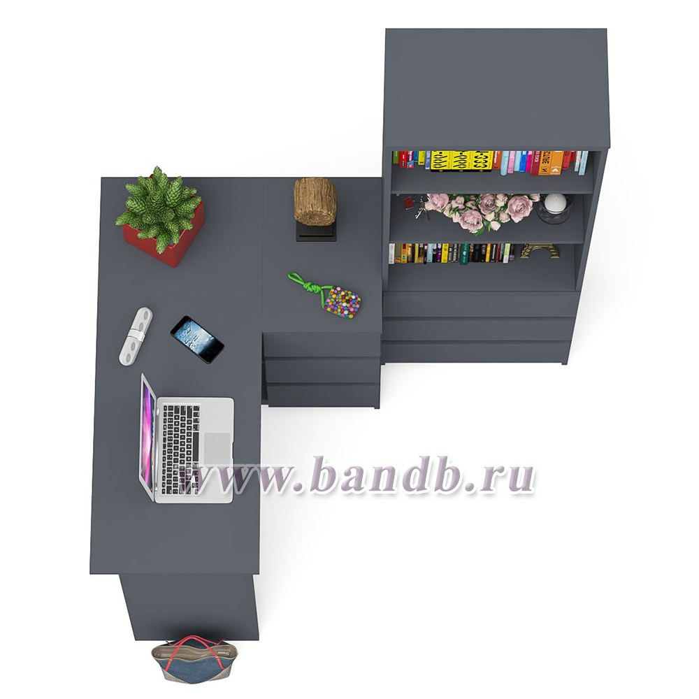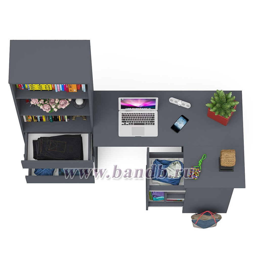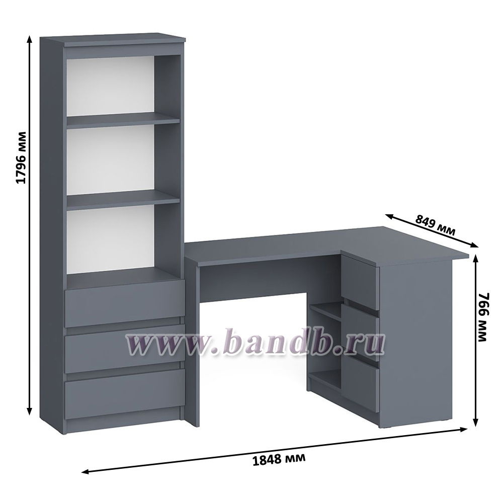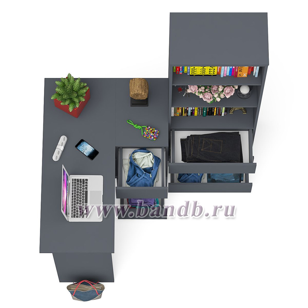 Стеллаж-комод три ящика Мори МСТ-600 с угловым компьютерным столом МС-16 тумба справа цвет графит