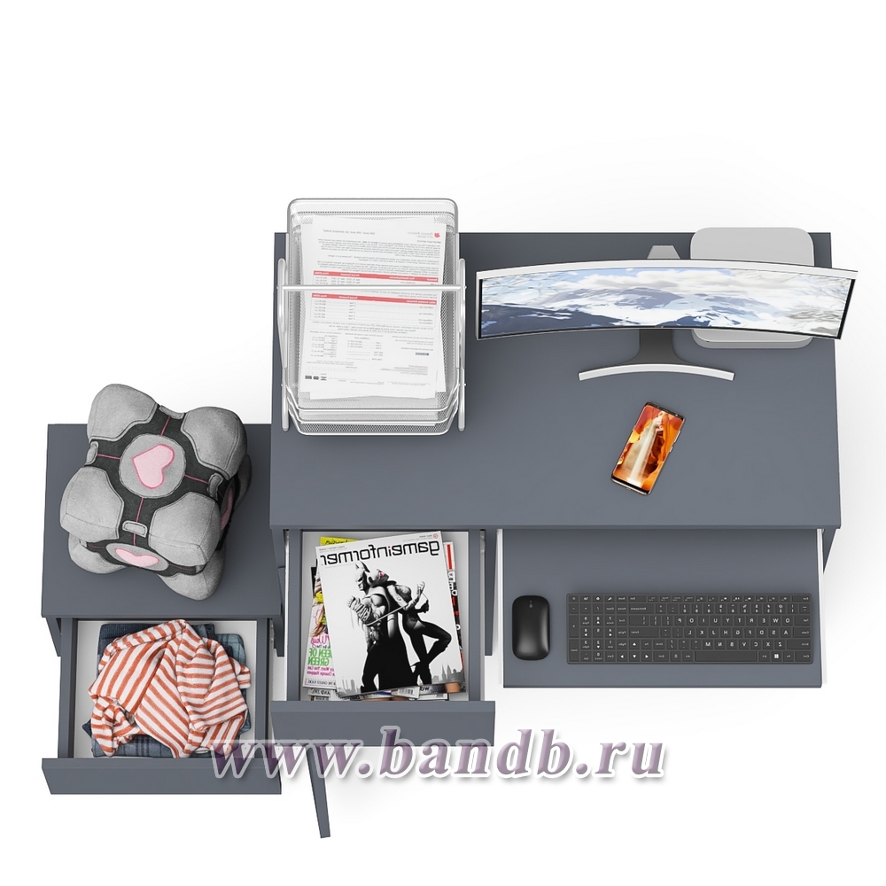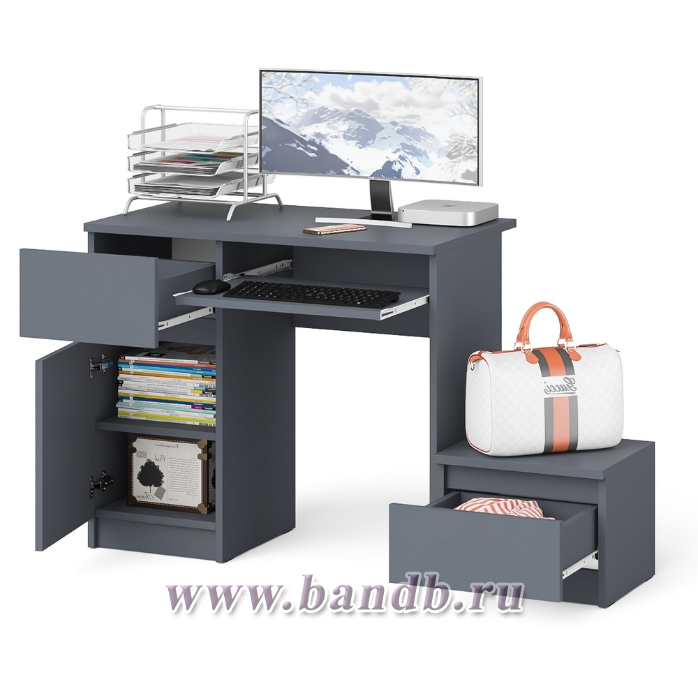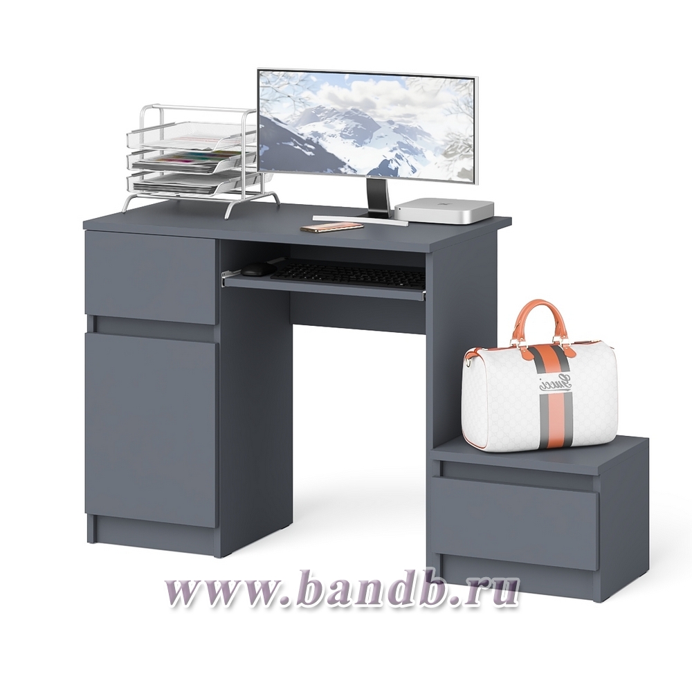 Стол компьютерный Мори МС-1 левый с тумбой цвет графит