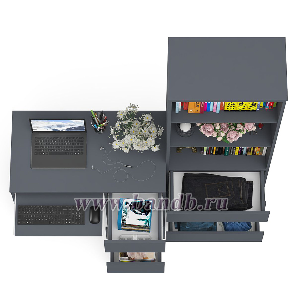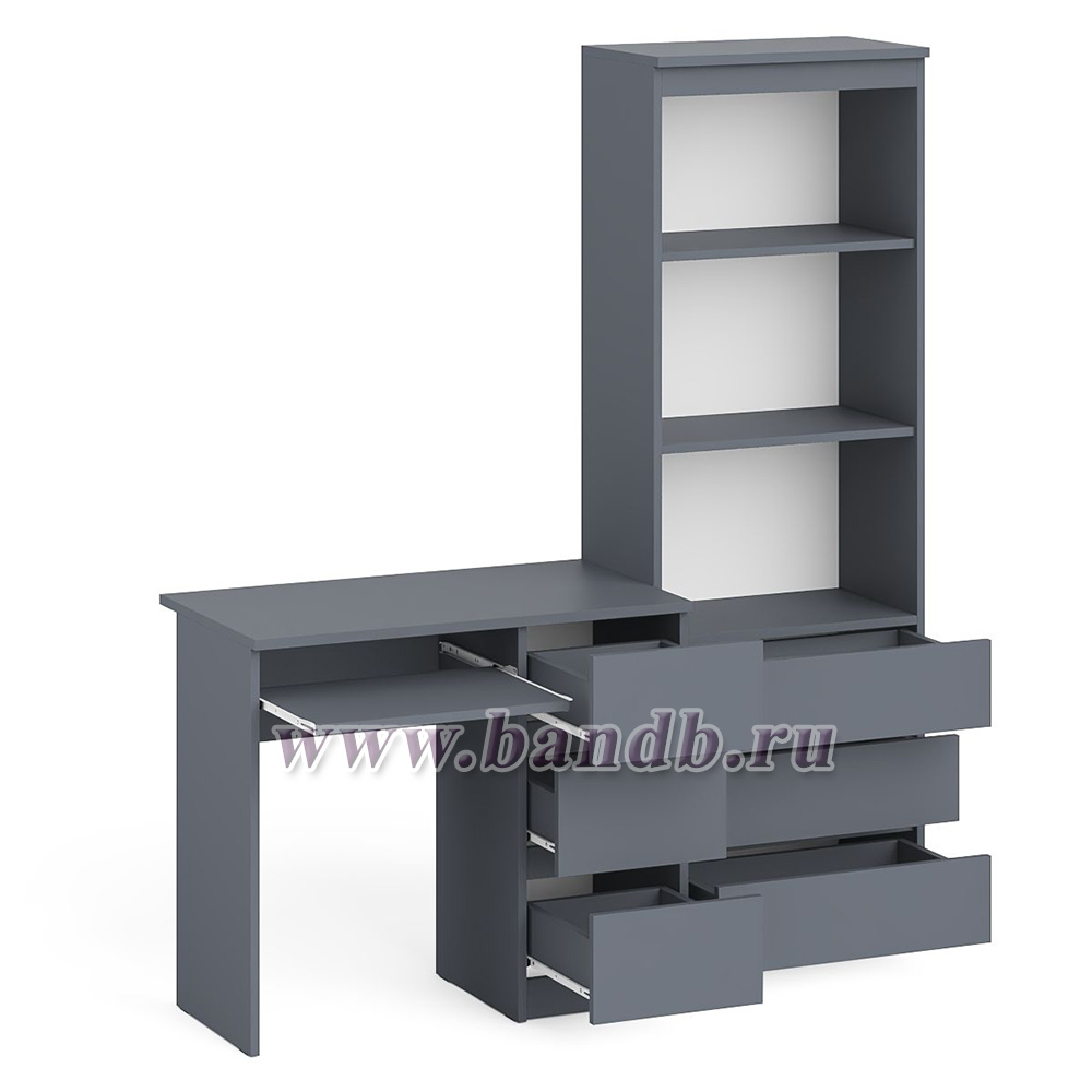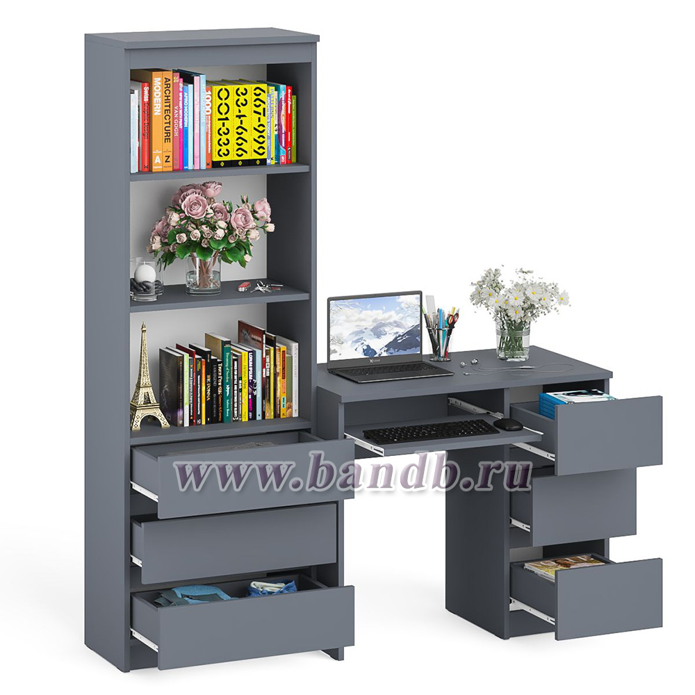 Стол компьютерный с тумбой справа и стеллаж с ящиками и нишами на 600 Мори цвет графит