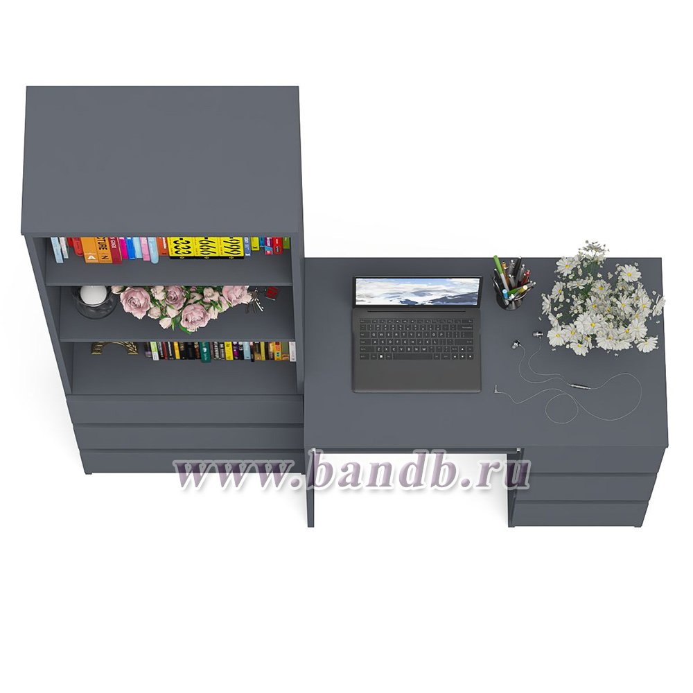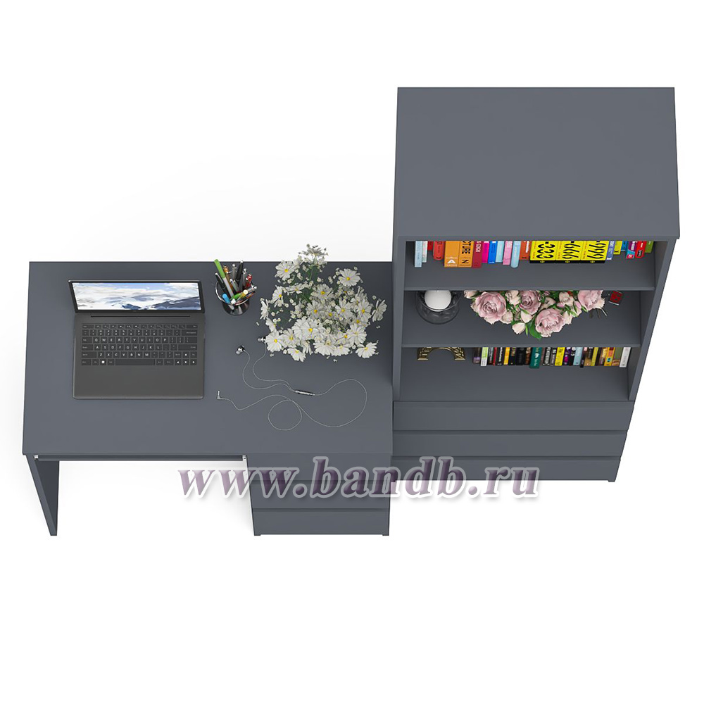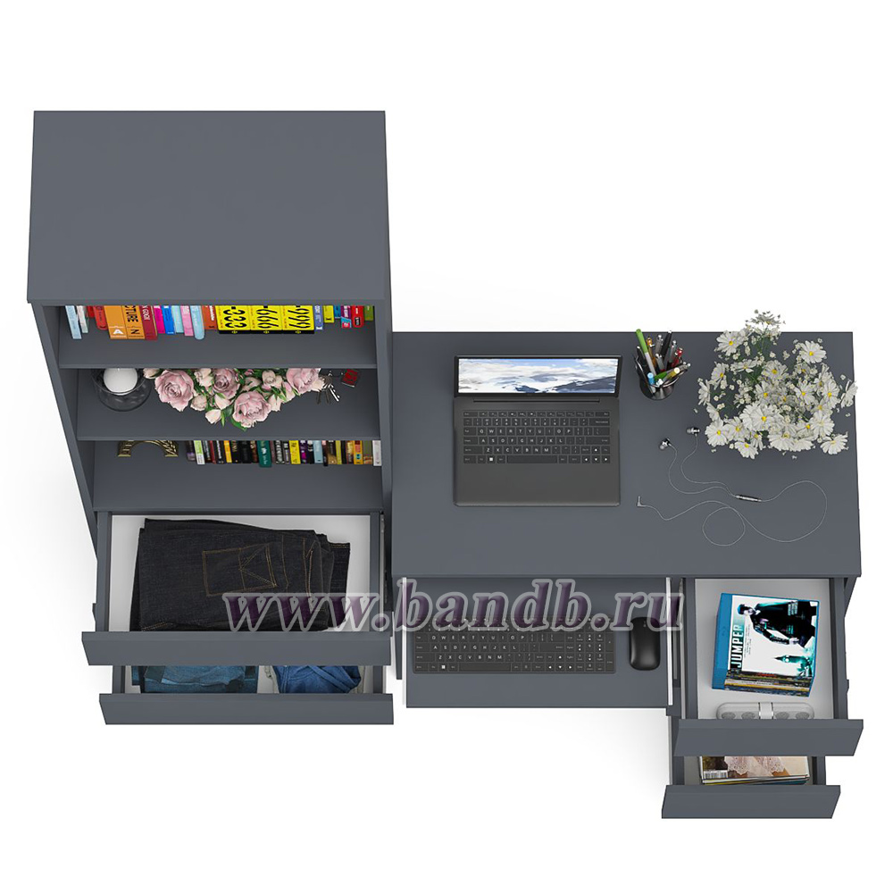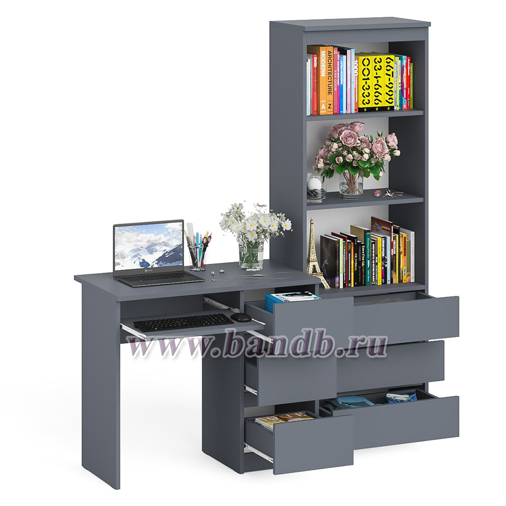 Стол компьютерный с тумбой справа и стеллаж с ящиками и нишами на 600 Мори цвет графит