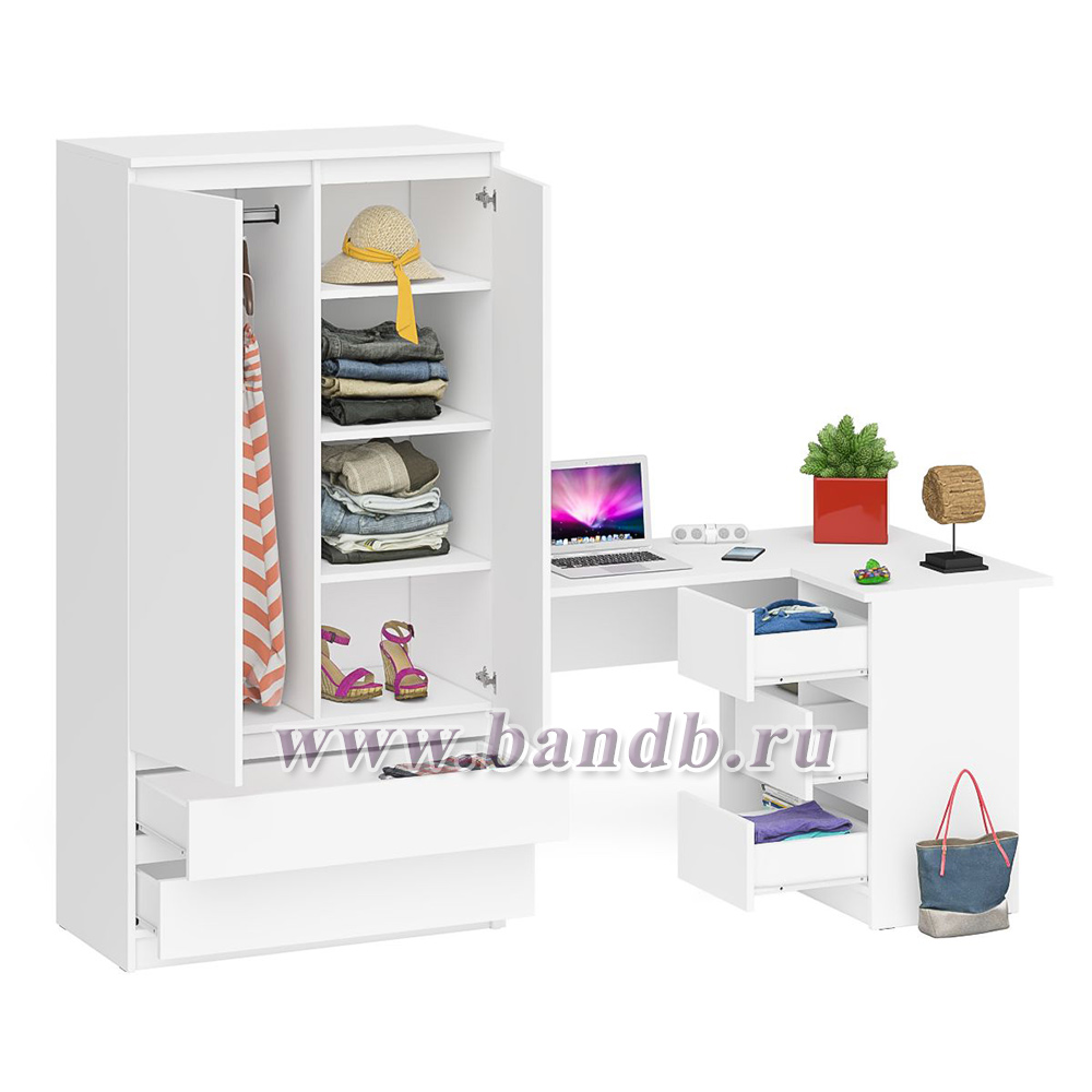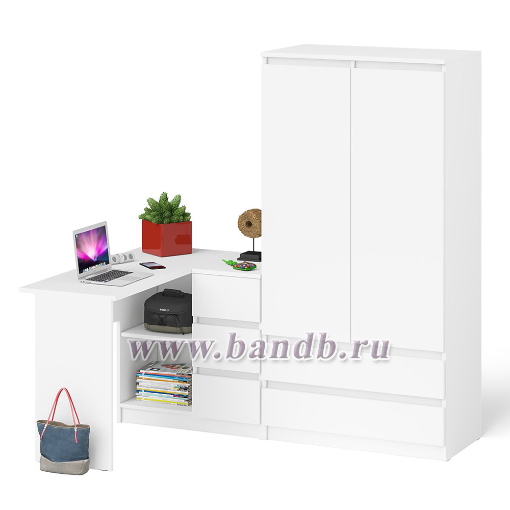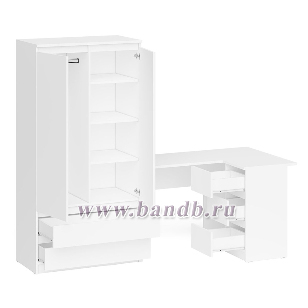 Стол компьютерный угловой правый Мори и шкаф-комод Мори МШ900.1 цвет белый
