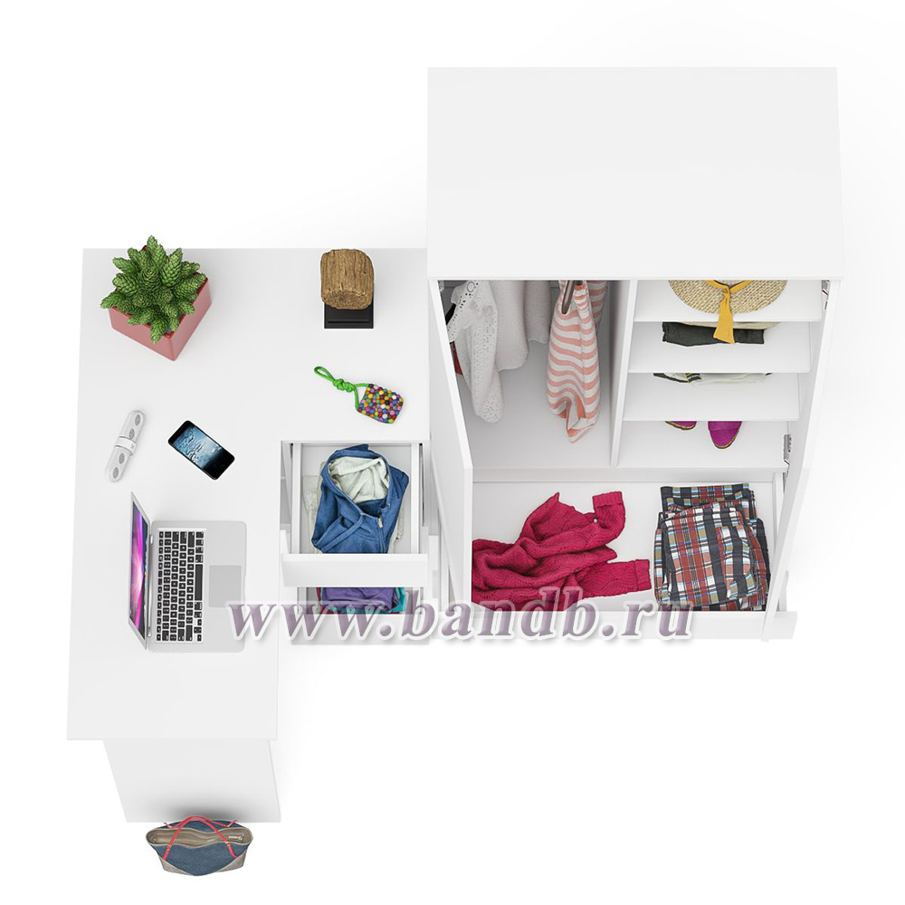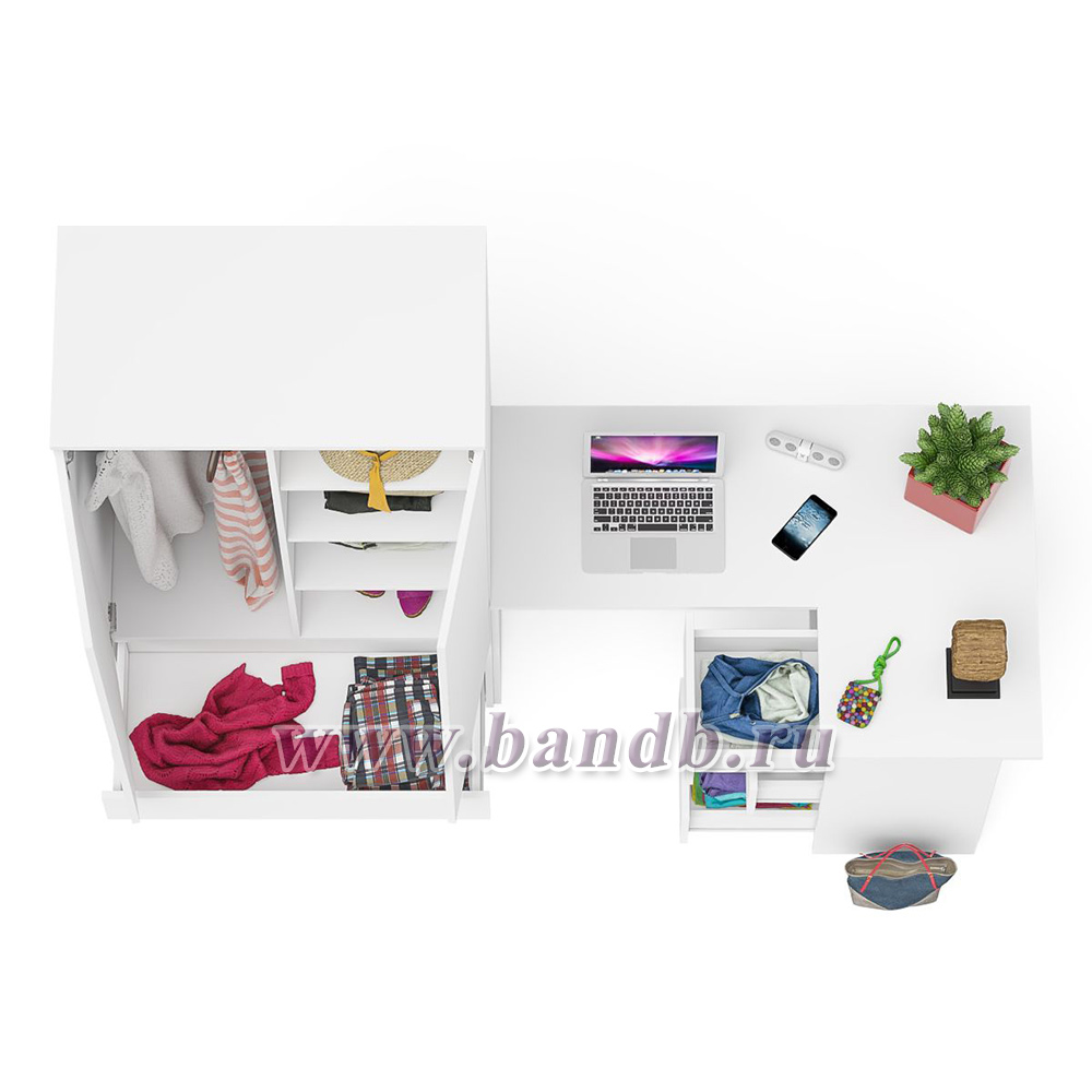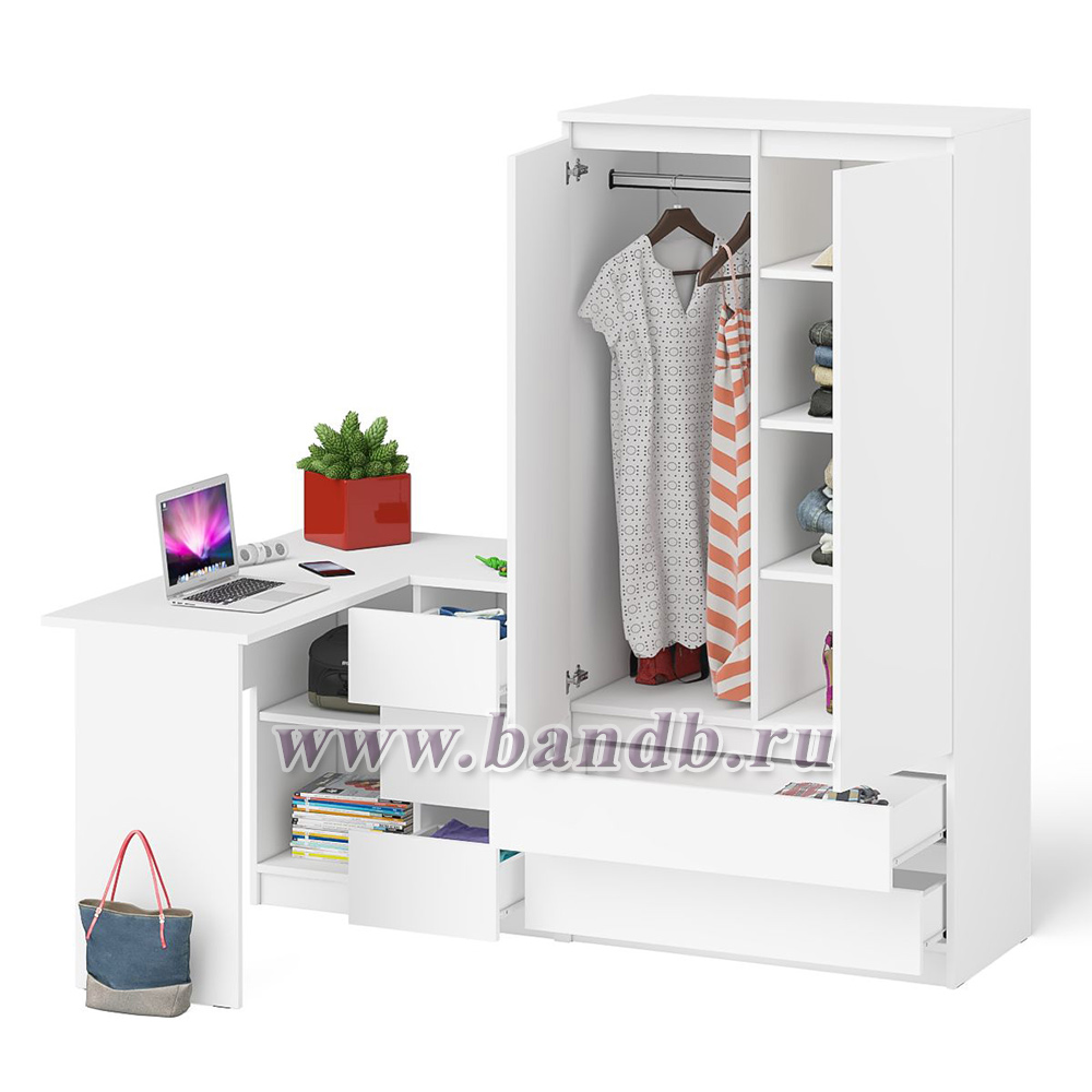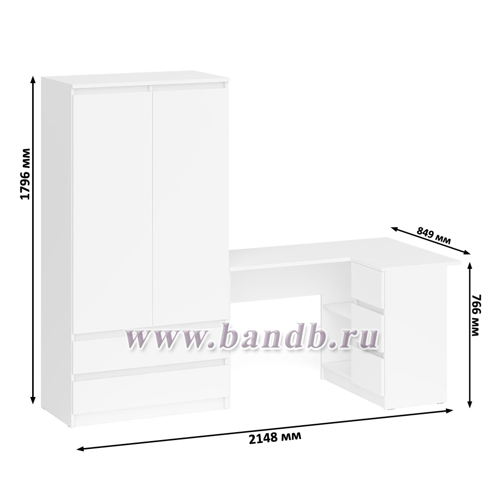 Стол компьютерный угловой правый Мори и шкаф-комод Мори МШ900.1 цвет белый