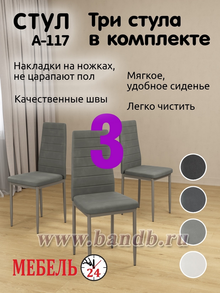 Три стула для кухни Мебель--24 A-117 цвет светло-серый мягкое сиденье