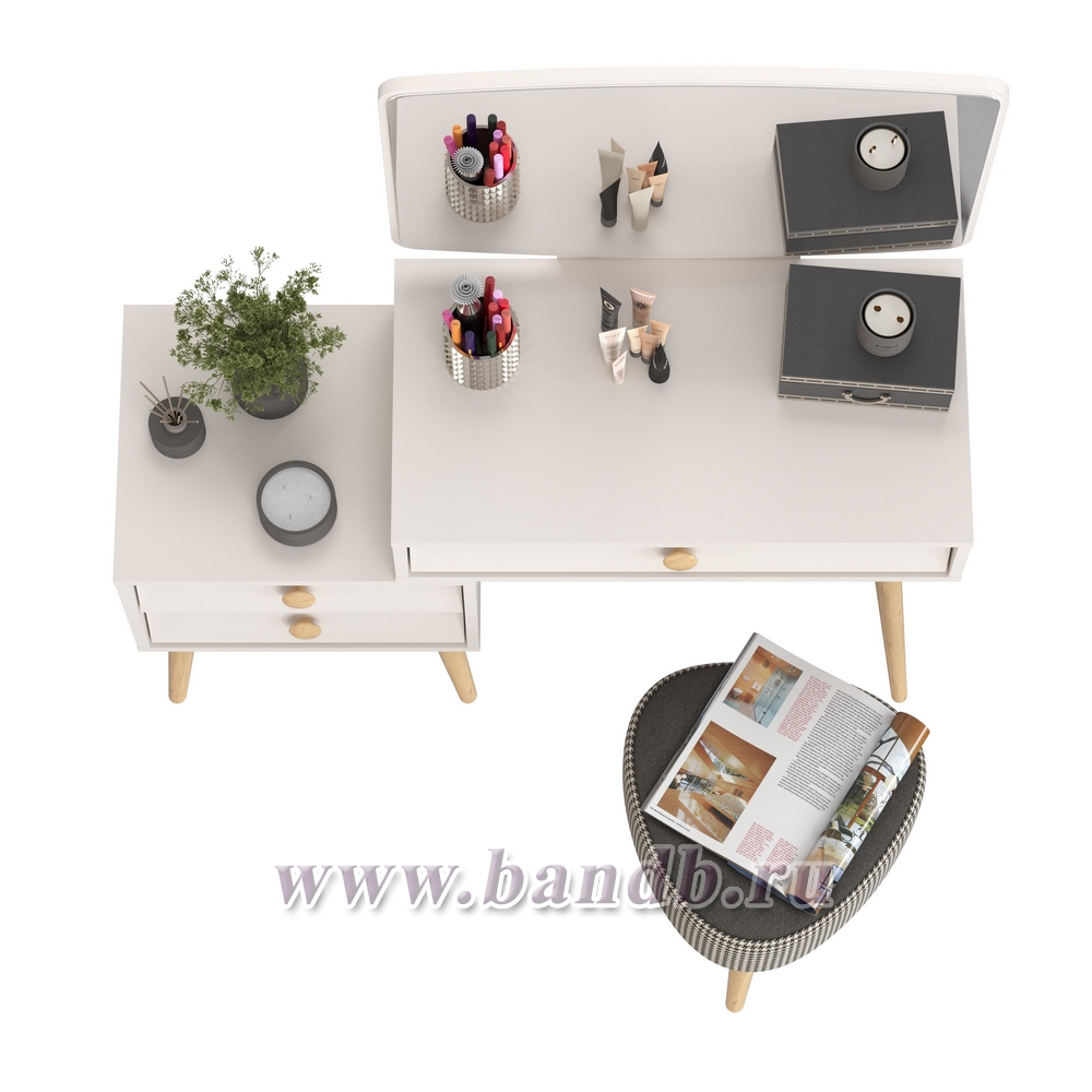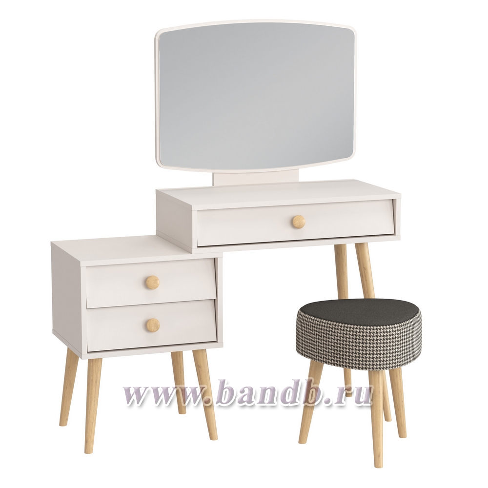Туалетный столик Афина с банкеткой Ева цвет кашемир серый/ткань чёрная