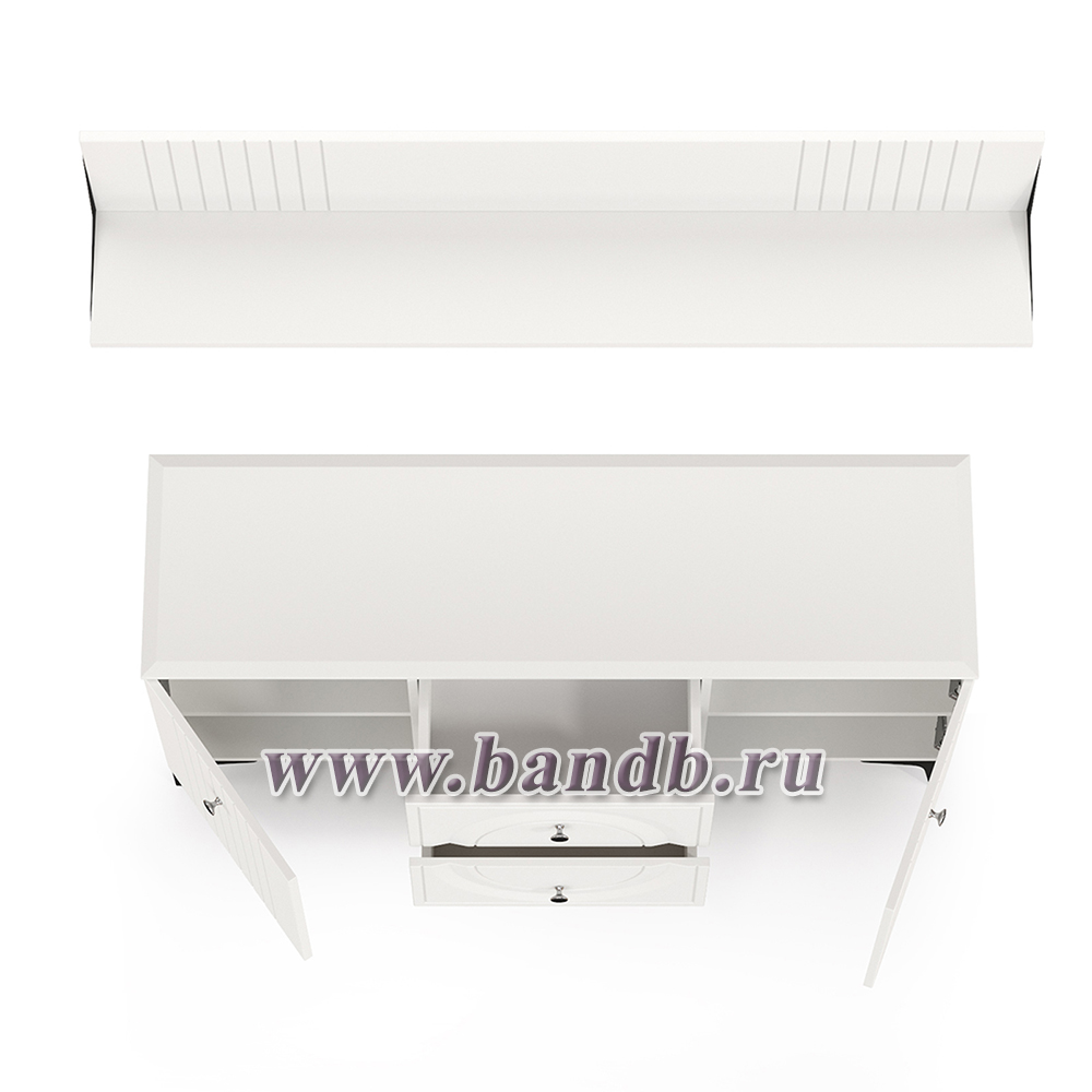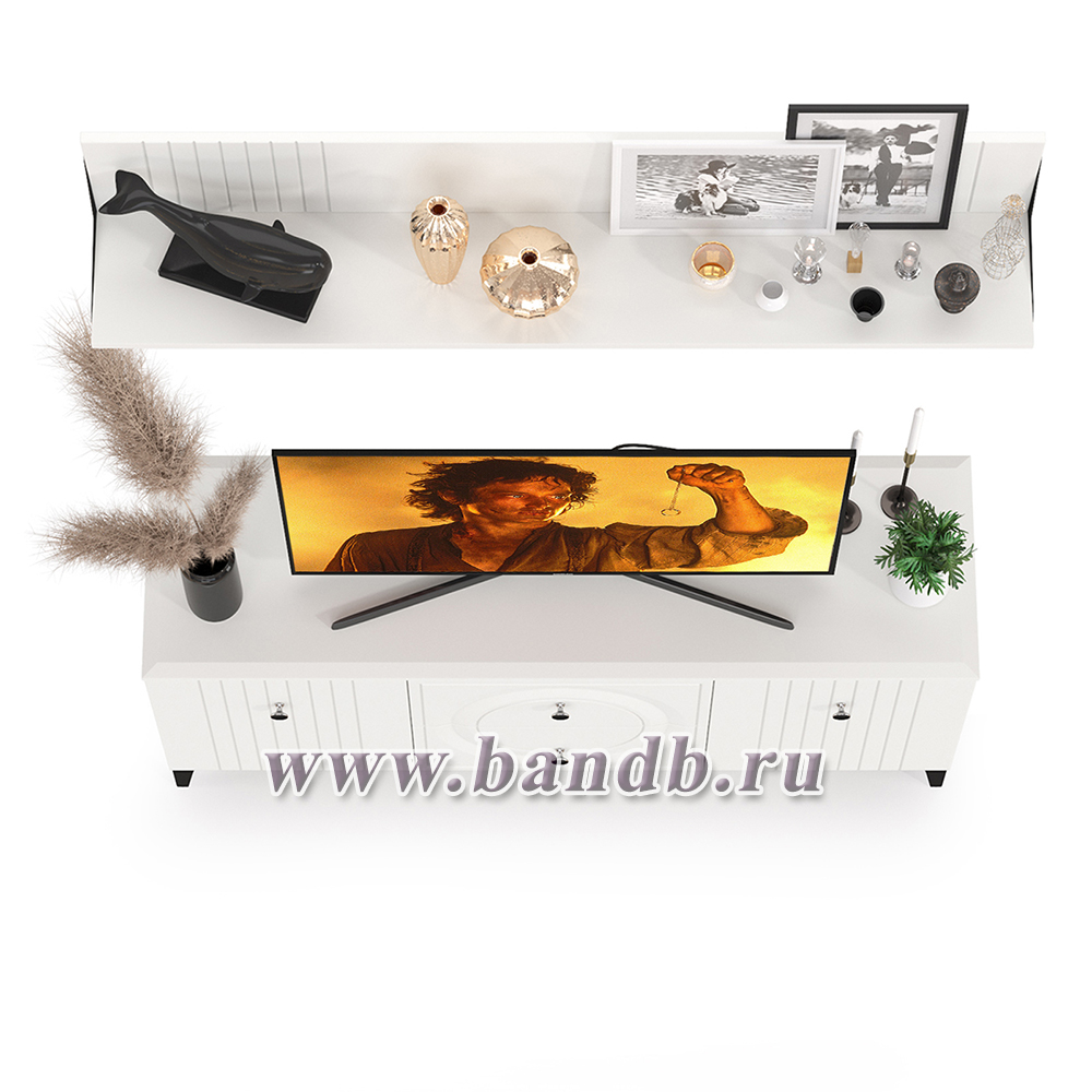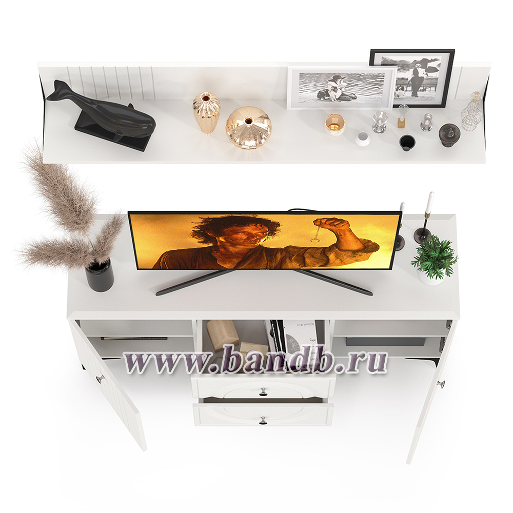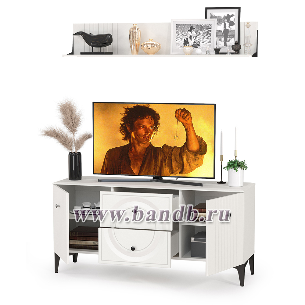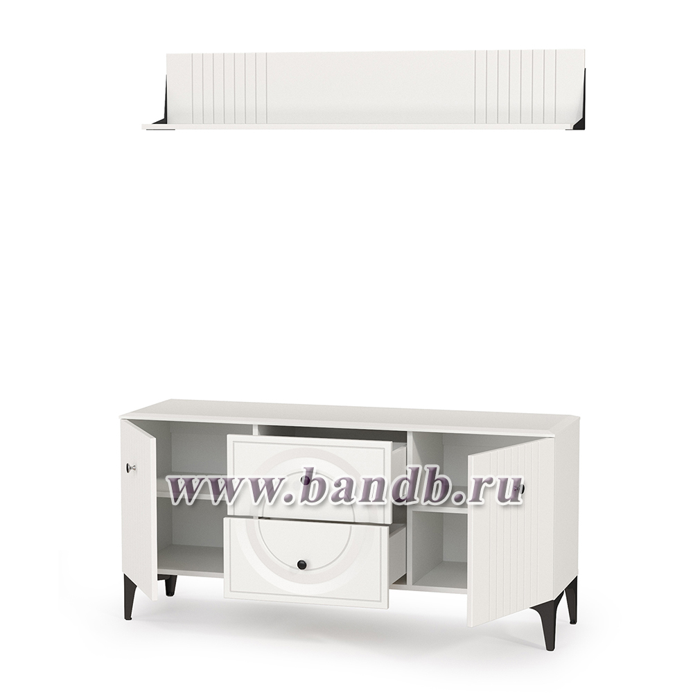 Тумба для ТВ с навесной полкой Валенсия цвет белый шагрень