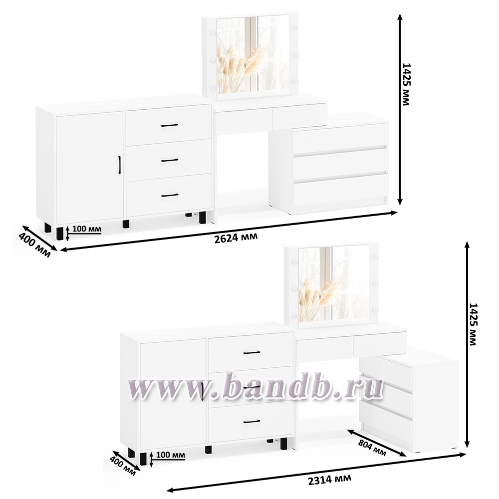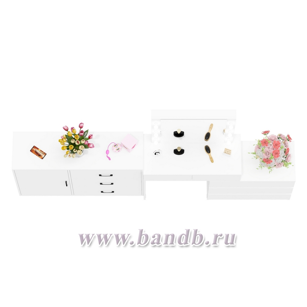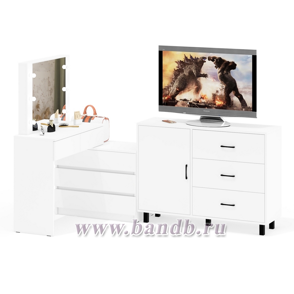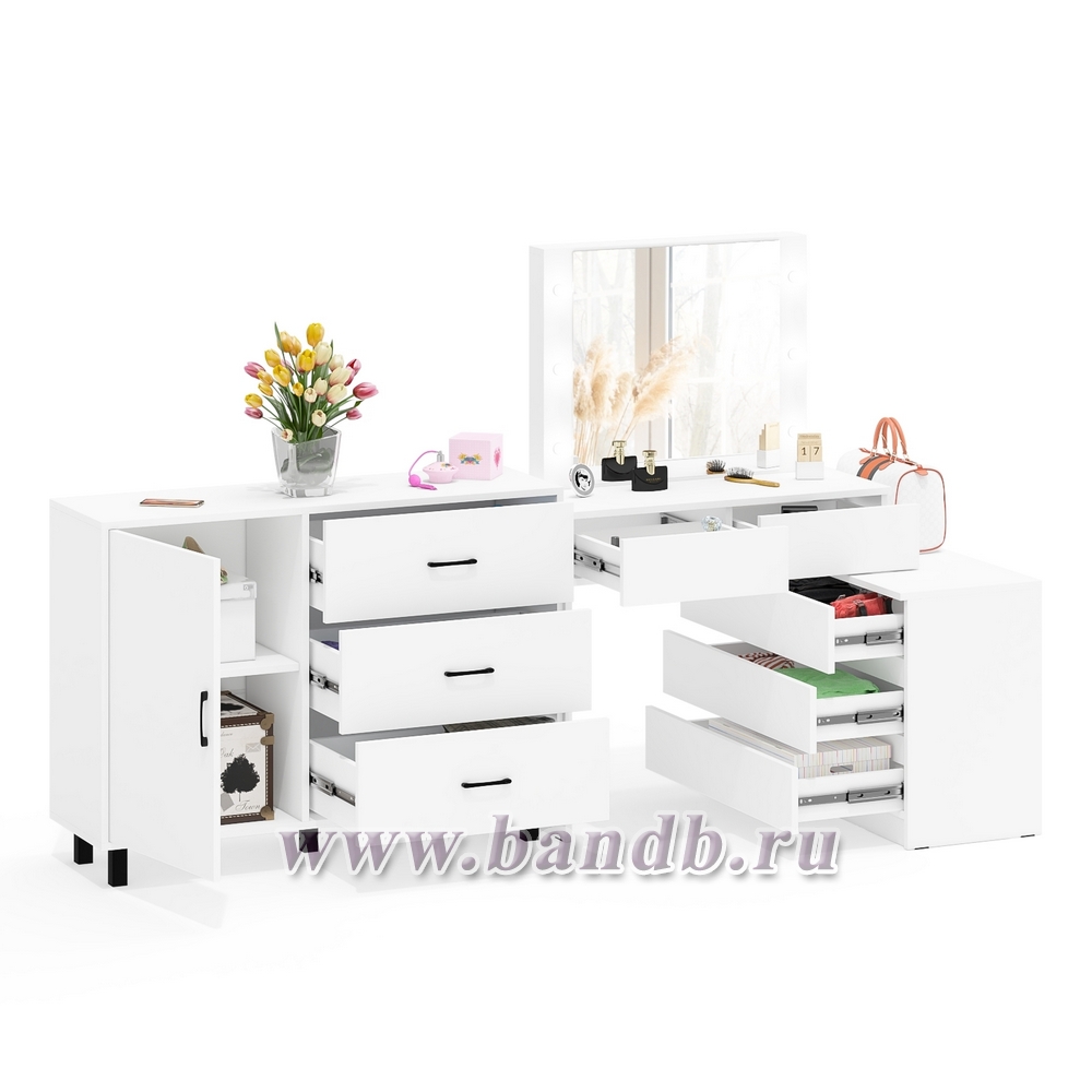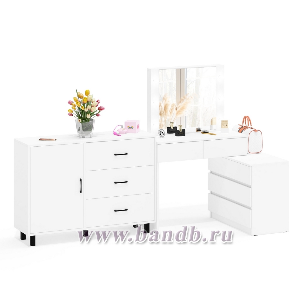 Угловой туалетный столик с подсветкой 110 и тумба-комод дверка и 3 ящика 122-1204 цвет белый