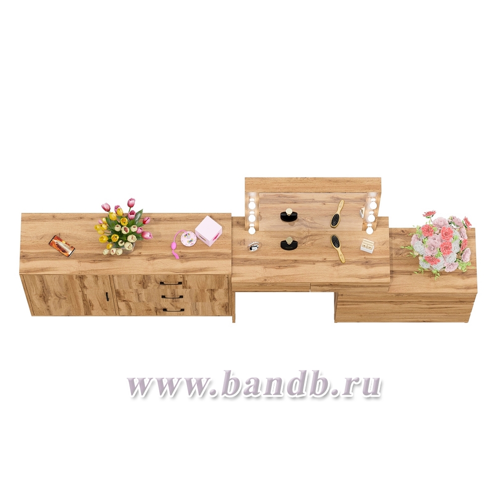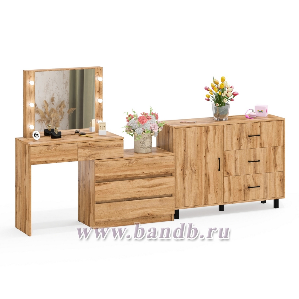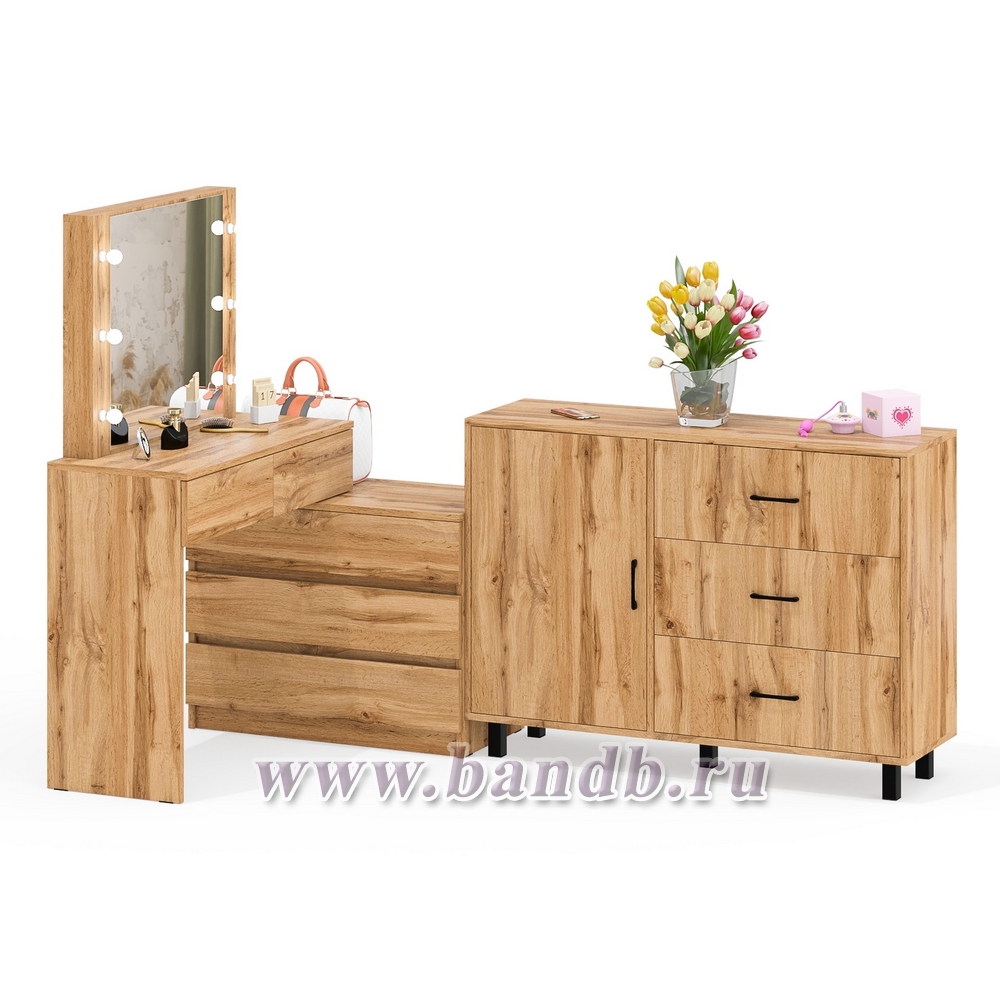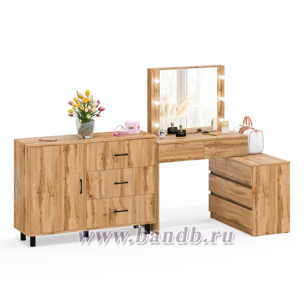 Угловой туалетный столик с подсветкой 110 и тумба-комод дверка и 3 ящика 122-1204 цвет дуб вотан